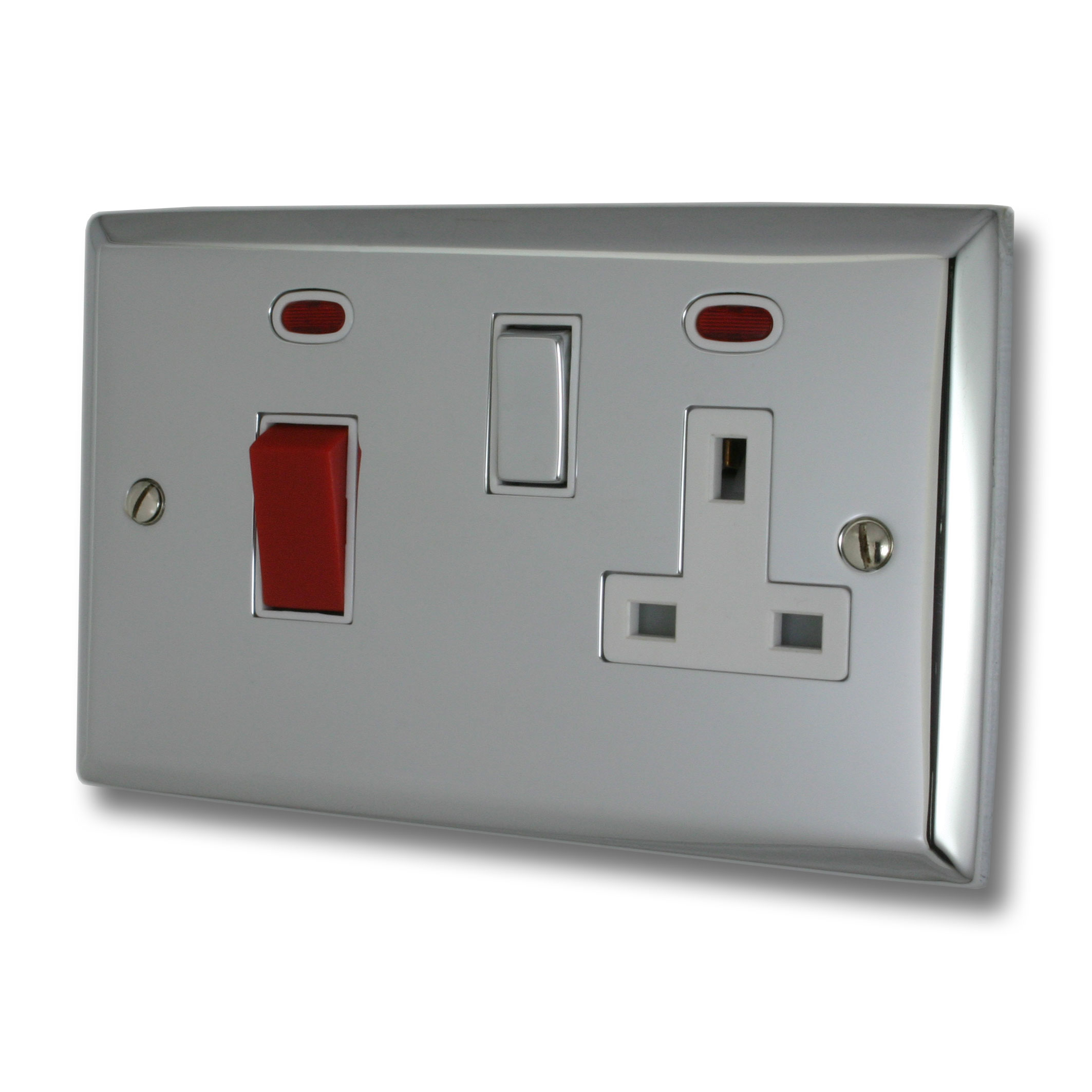 Spectrum Polished Chrome Cooker Switch with Socket (White Inserts) - G+H SC229