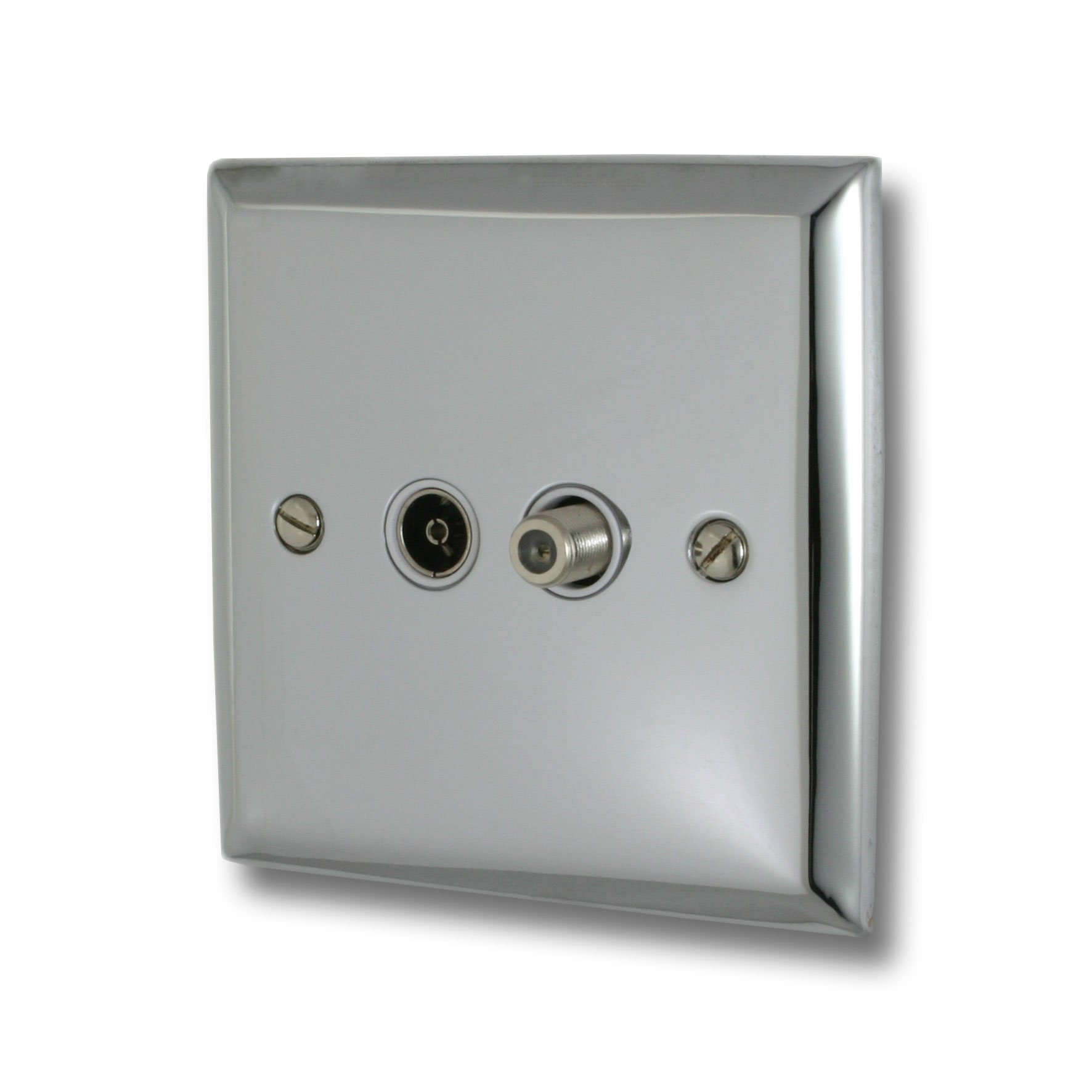 Spectrum Polished Chrome TV/Satellite Socket (White Insert) - G+H SC38W