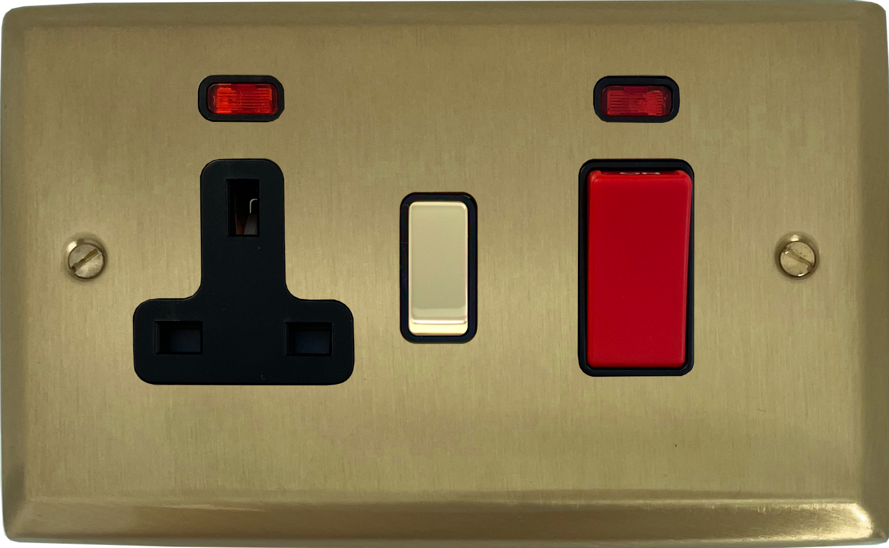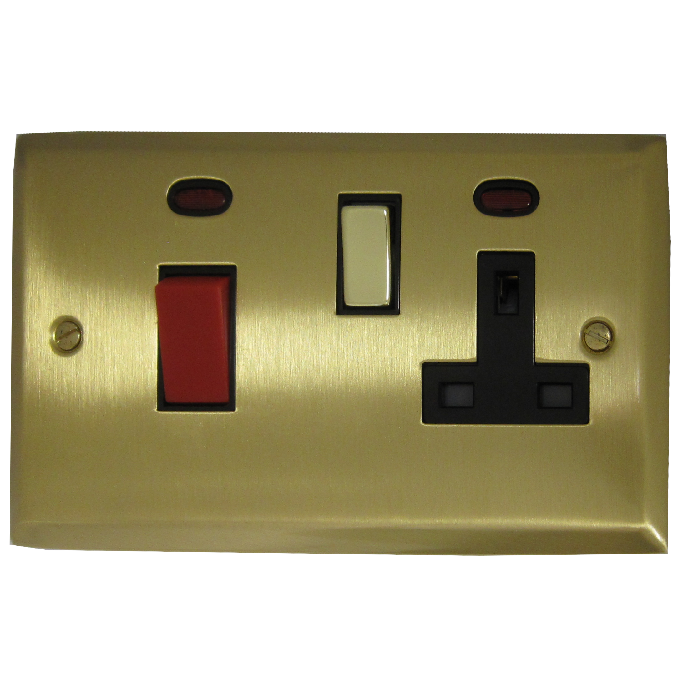 Spectrum Satin Brass Cooker Switch with Socket (Black Inserts) - G+H SSB329