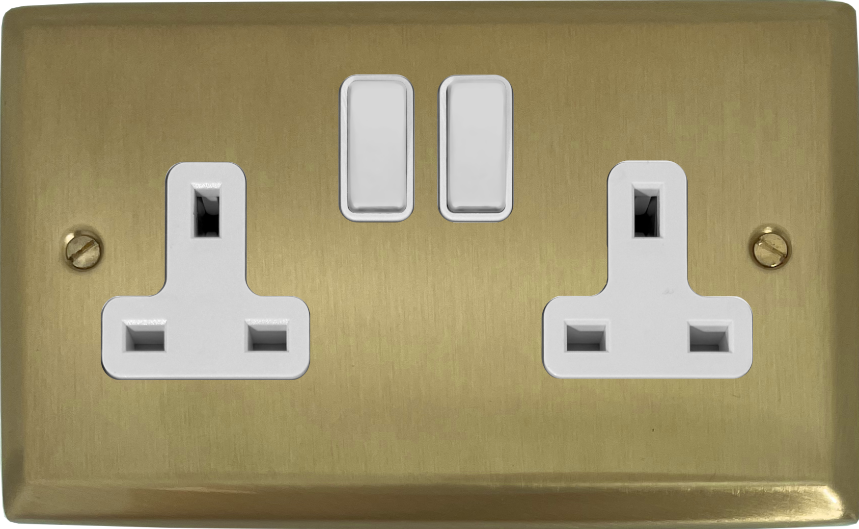 Spectrum Satin Brass Double Socket (White Switches) - G+H SSB10W