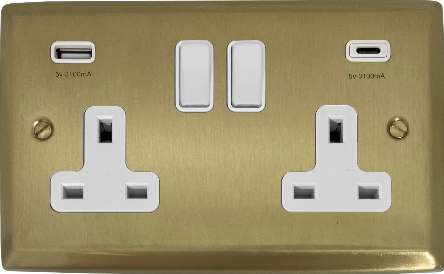 Spectrum Satin Brass Double Socket with USB (USB-A and USB-C/White Switches) - G+H SSB911W