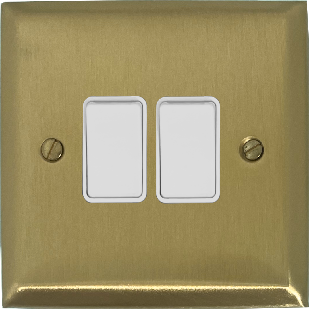 Spectrum Satin Brass Light Switch (2 Gang/White Switches) - G+H SSB2W