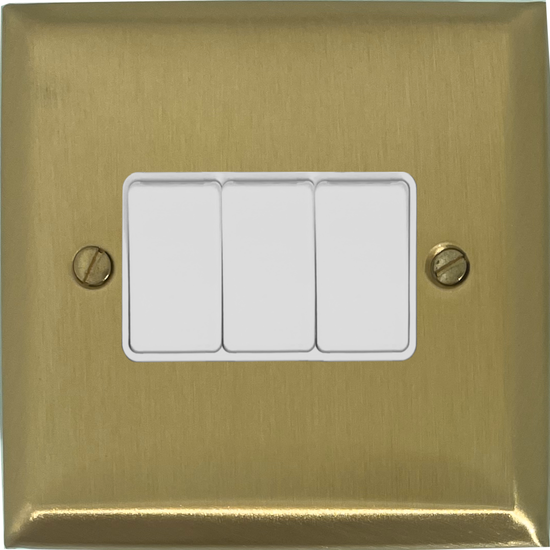 Spectrum Satin Brass Light Switch (3 Gang/White Switches) - G+H SSB3W