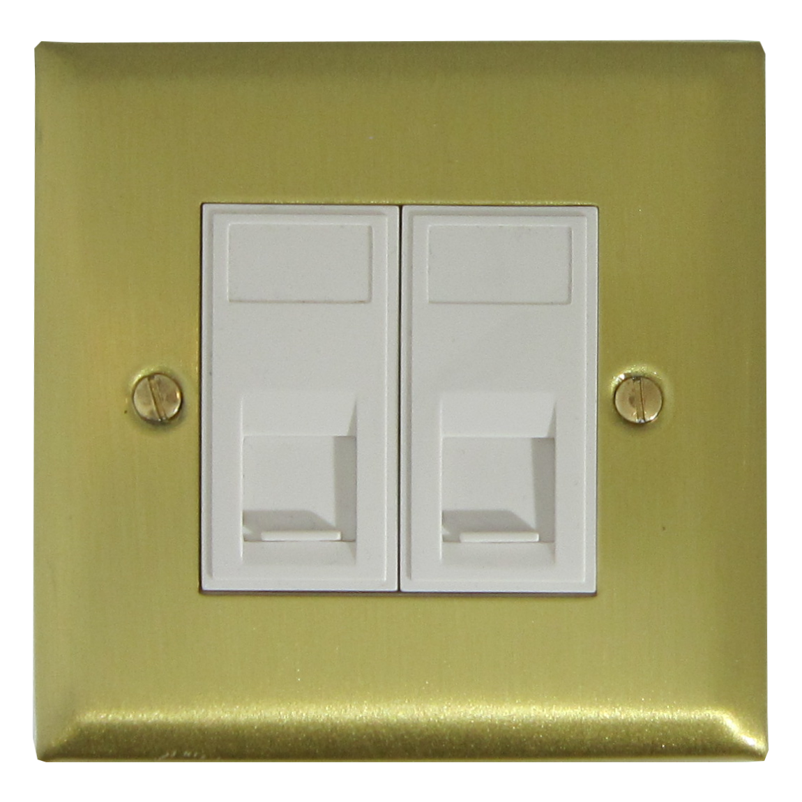 Spectrum Satin Brass RJ45 Socket (2 Gang/White Insert) - G+H SSB62W