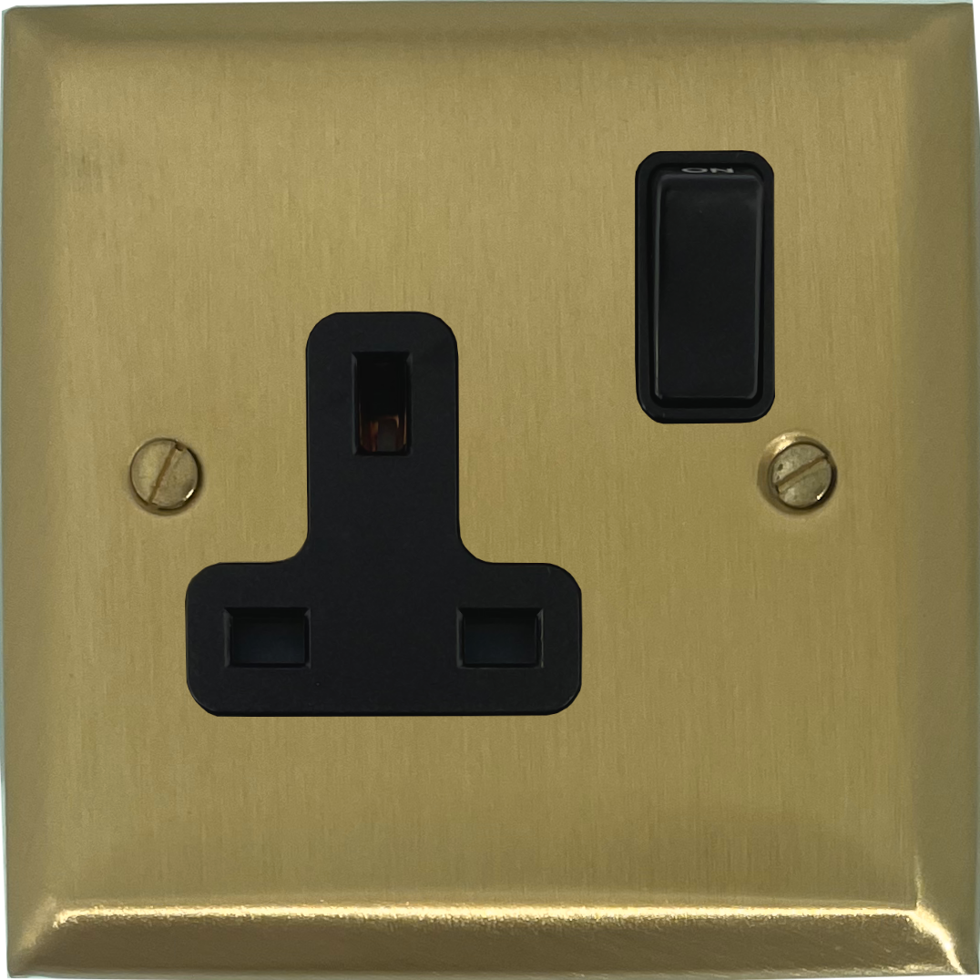 Spectrum Satin Brass Single Socket (Black Switch) - G+H SSB9B
