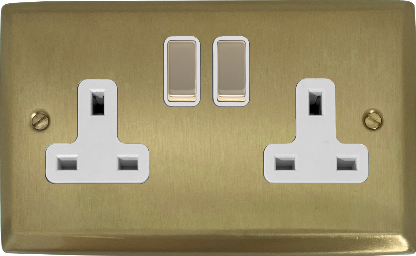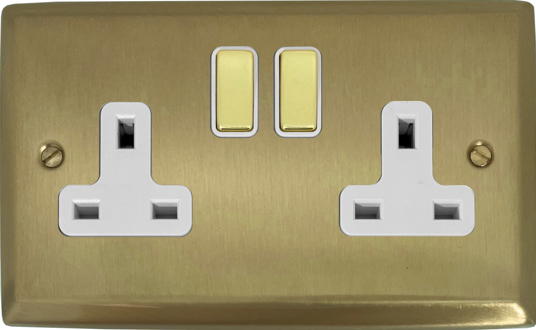 Spectrum Satin Brass Socket (2 Gang/White Insert) - G+H SSB210