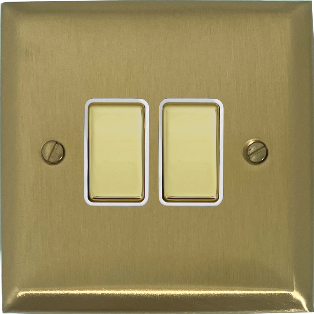 Spectrum Satin Brass Switch (2 Gang/White Insert) - G+H SSB202