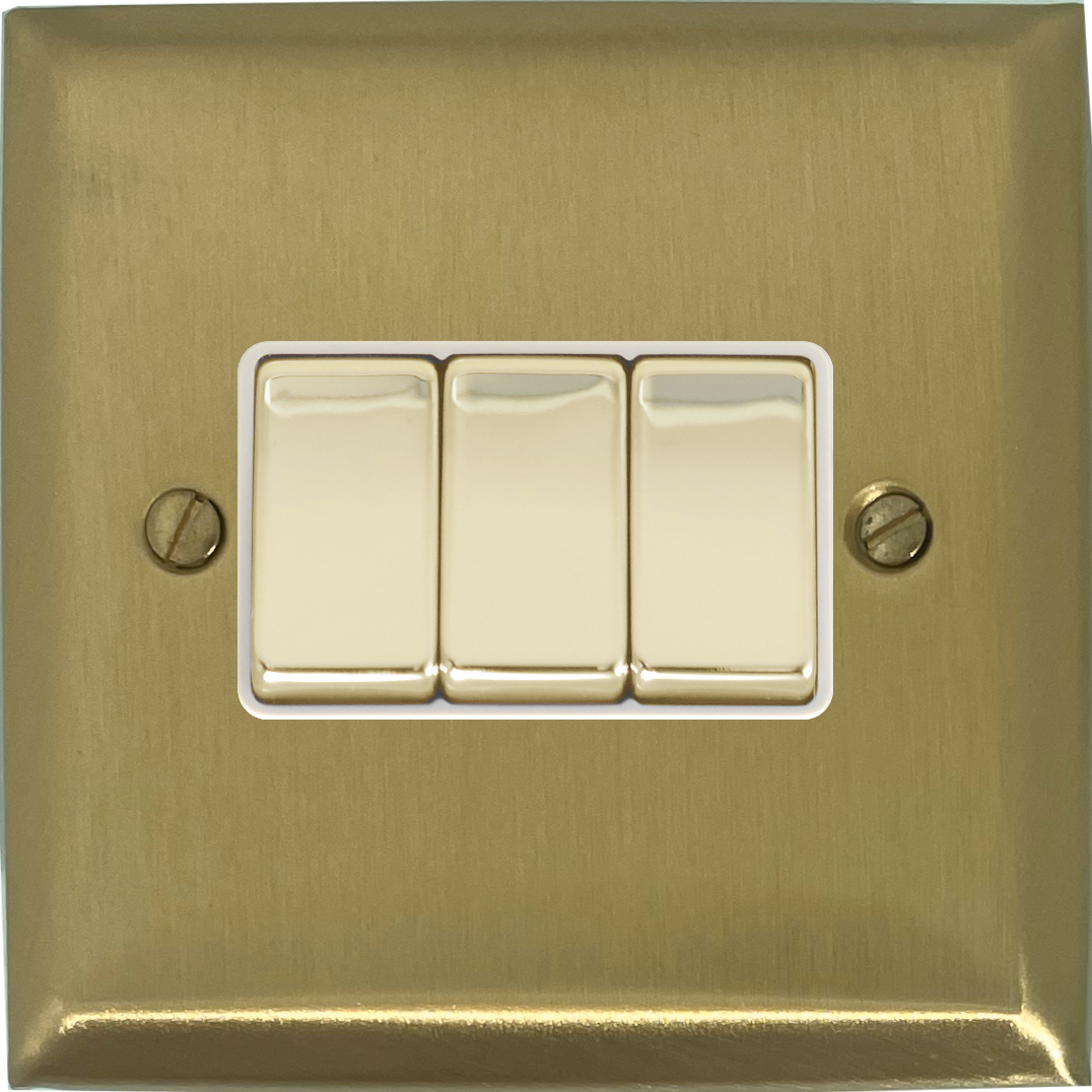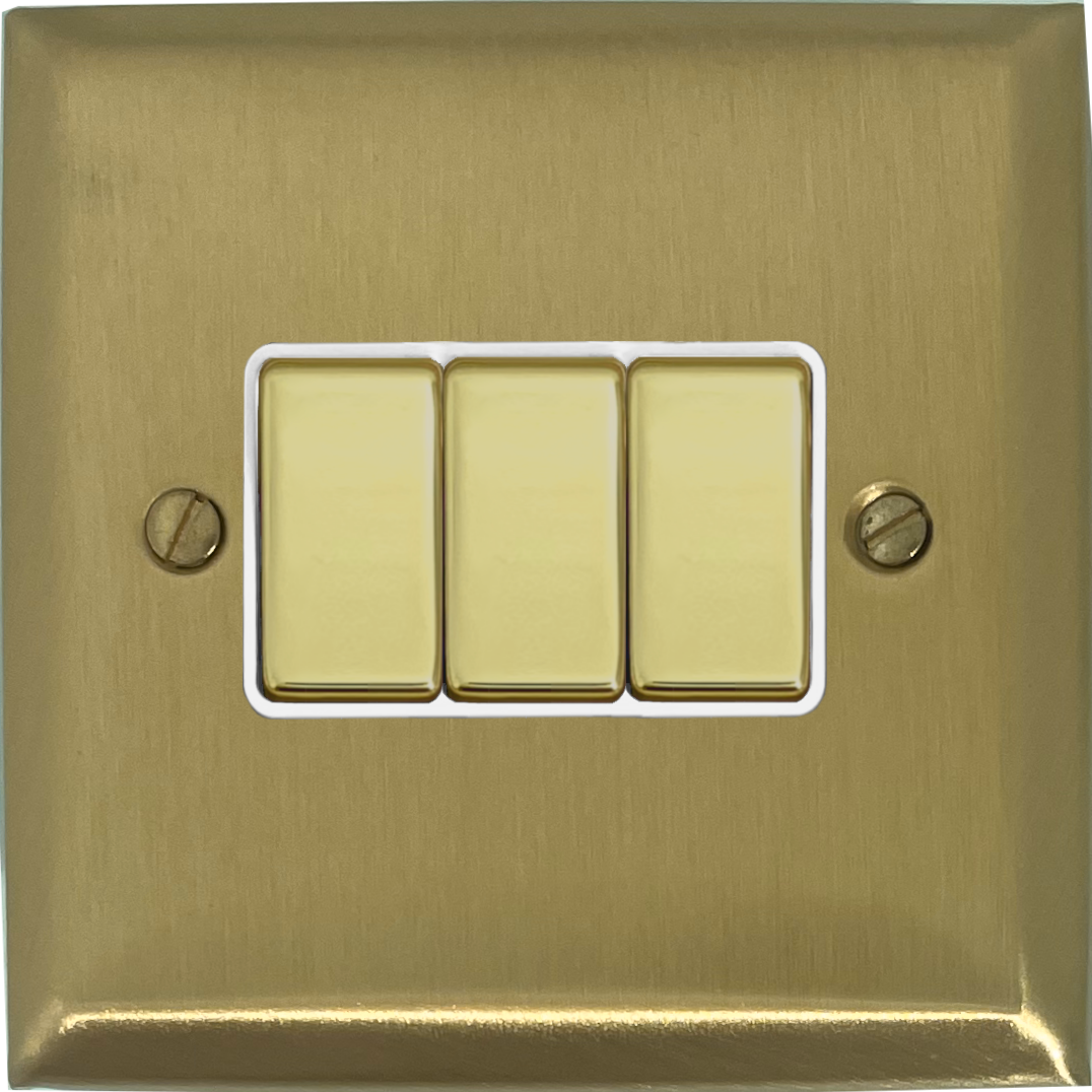 Spectrum Satin Brass Switch (3 Gang/White Insert) - G+H SSB203