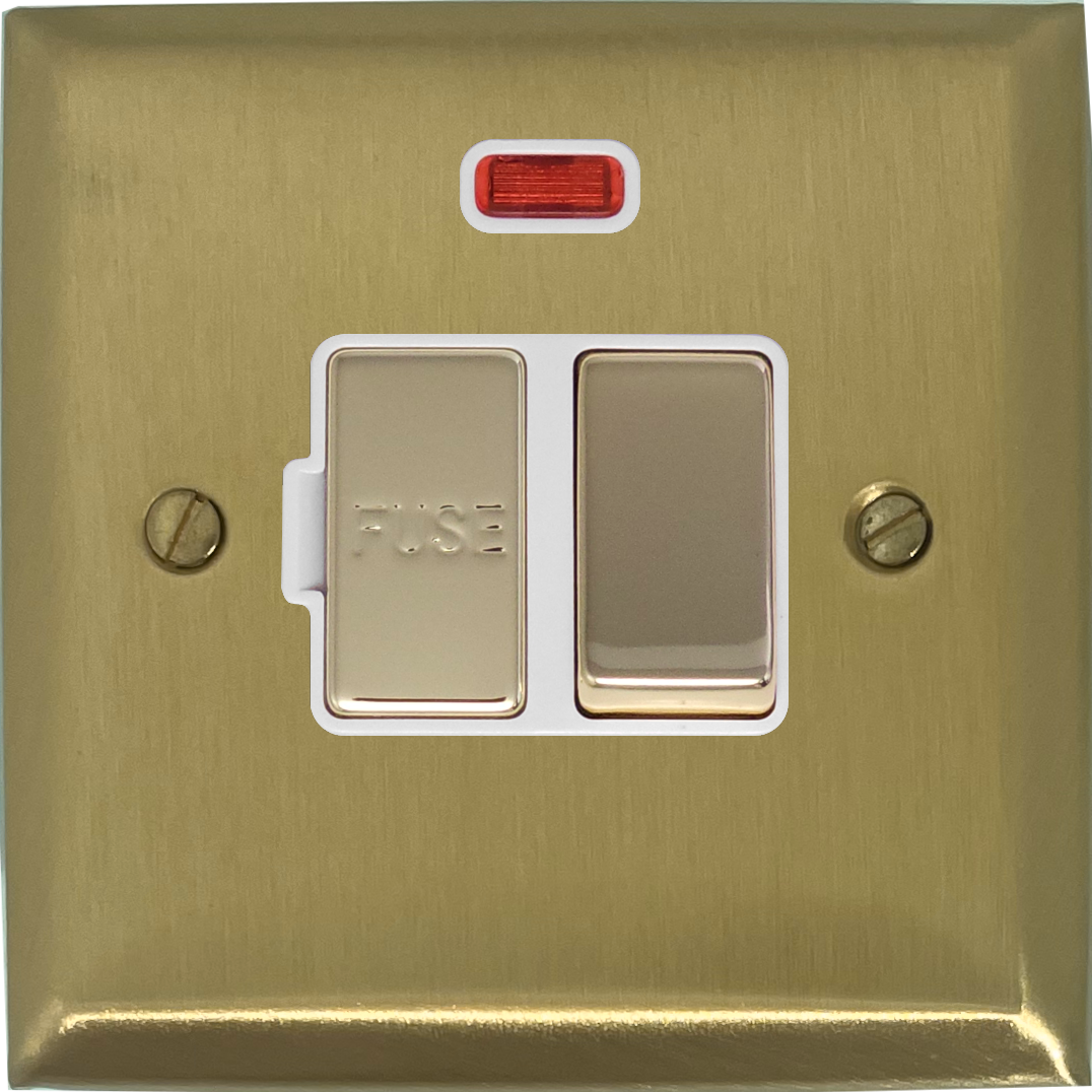 Spectrum Satin Brass Switched Fused Spur - Neon (White Inserts) - G+H SSB227