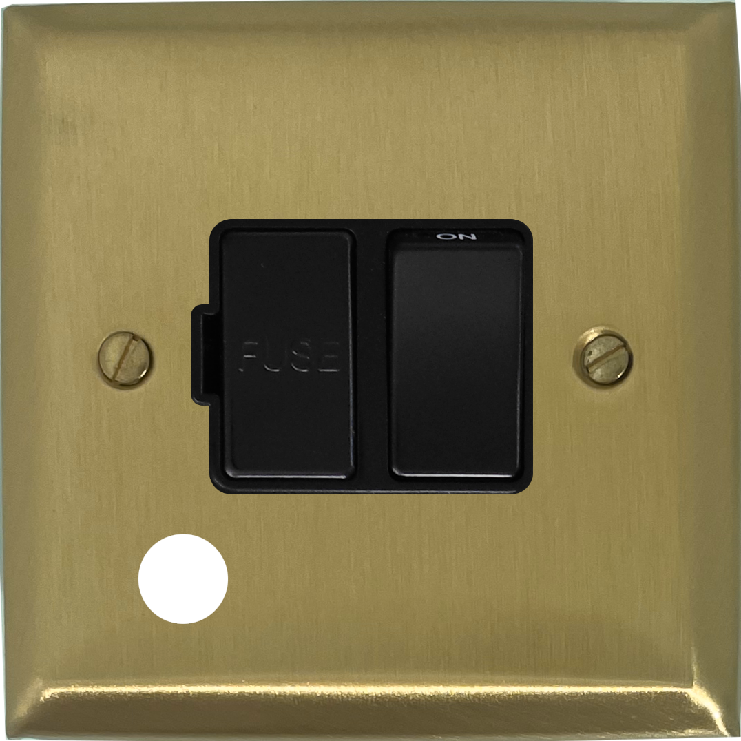Spectrum Satin Brass Switched Fused Spur with Flex Outlet (Black Switch) - G+H SSB56B