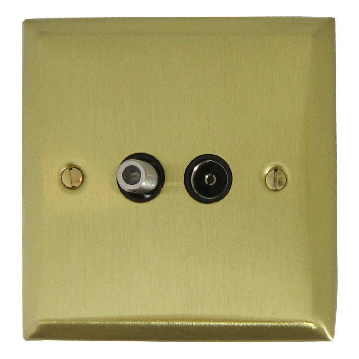 Spectrum Satin Brass TV/Satellite Socket (Black Insert) - G+H SSB38B
