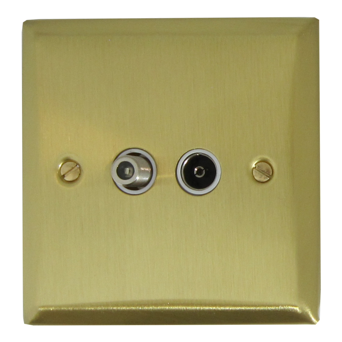 Spectrum Satin Brass TV/Satellite Socket (White Inserts) - G+H SSB38W