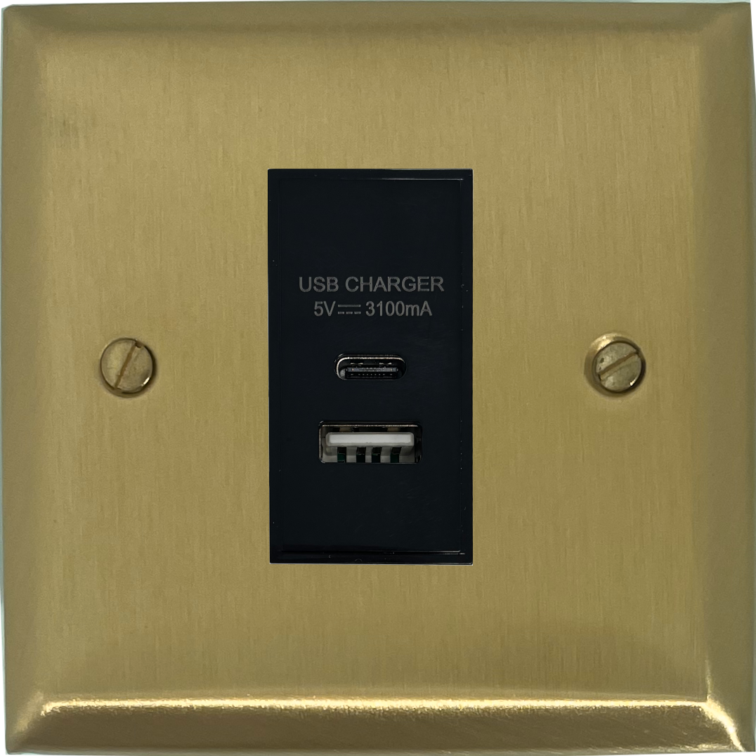 Spectrum Satin Brass USB Charger (USB-A and USB-C) (1 Gang/Black Insert) - G+H SSB41B