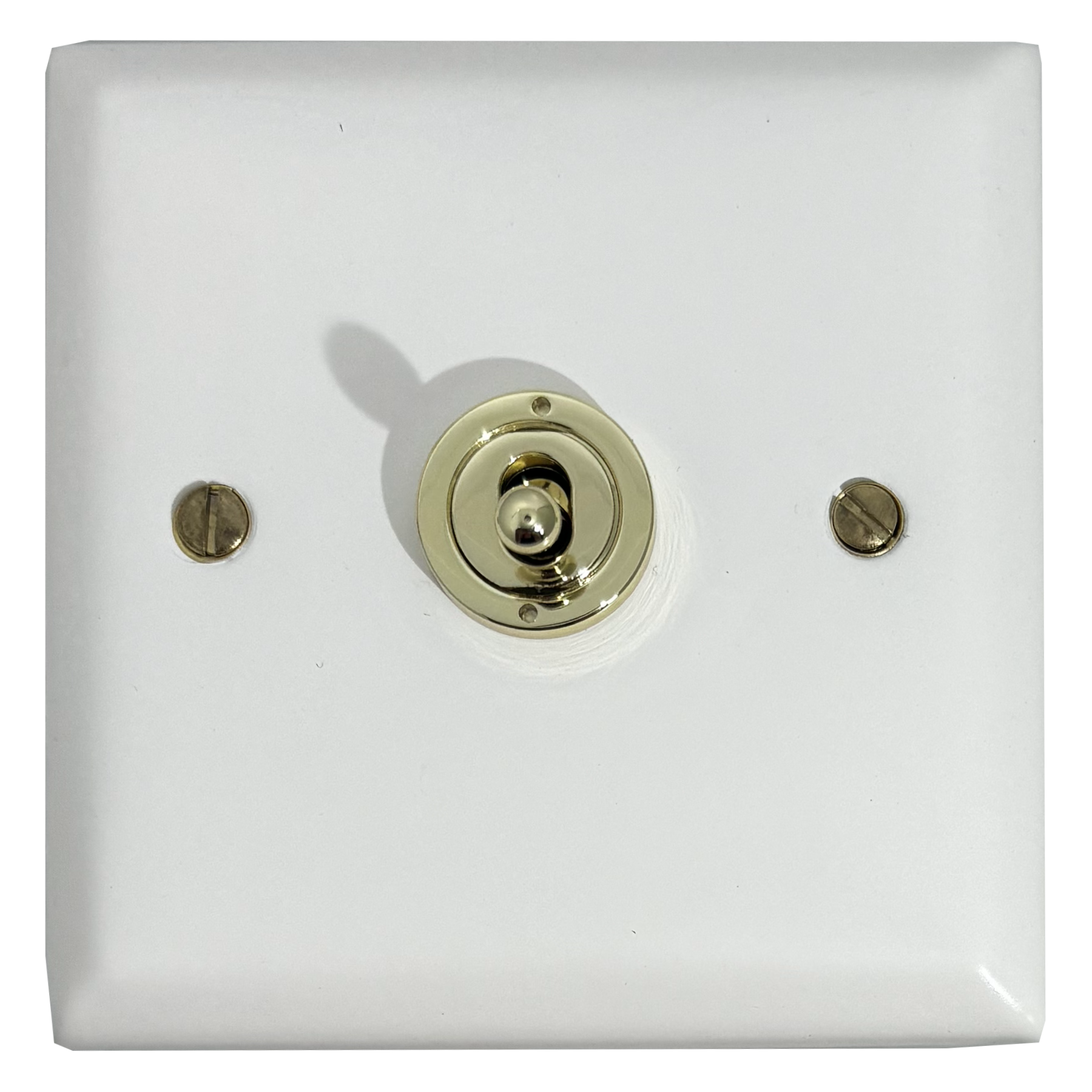 Spectrum White Intermediate Toggle Switch (Polished Brass Switch)