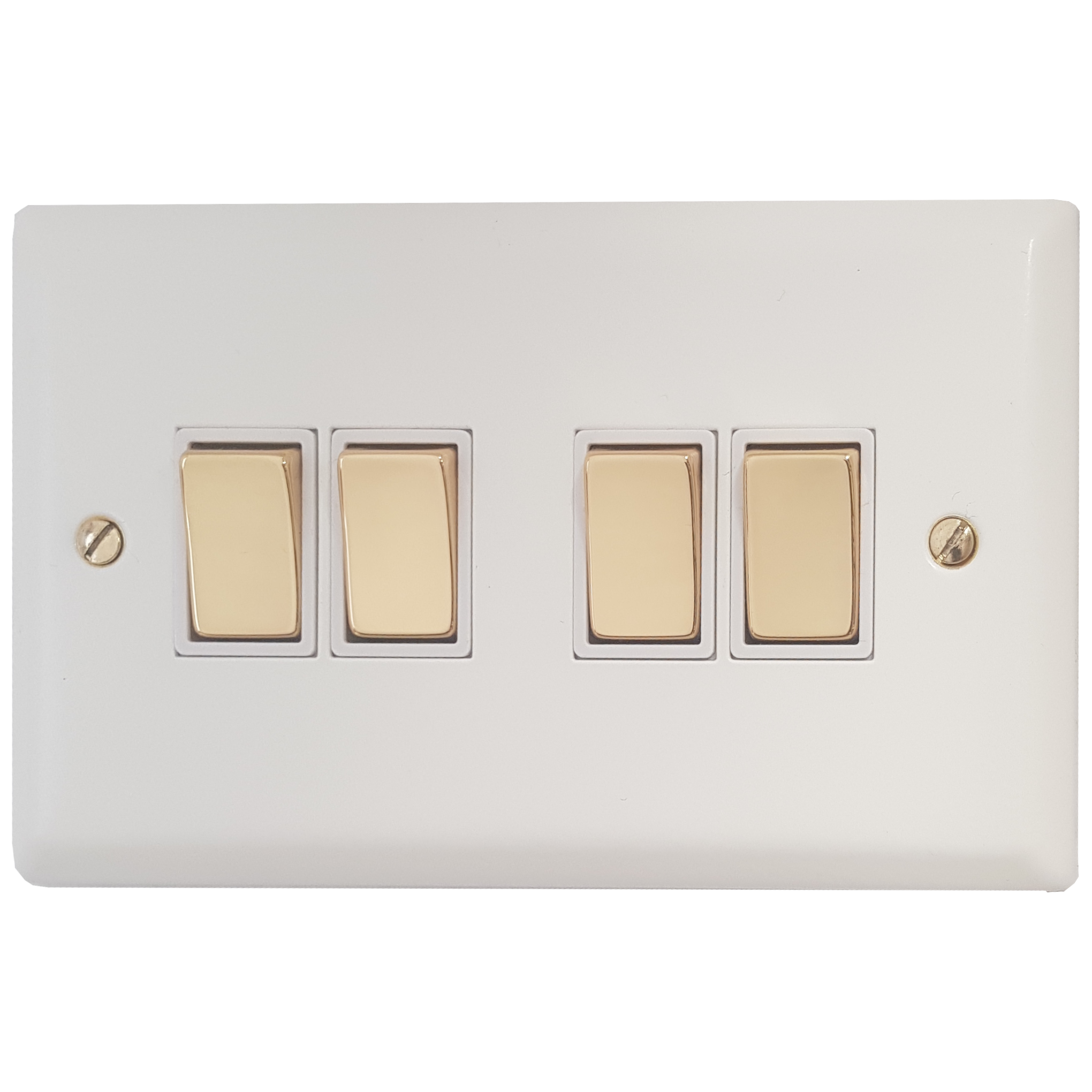 Spectrum White Light Switch (4 Gang/White insert/ Polished Brass Switches)