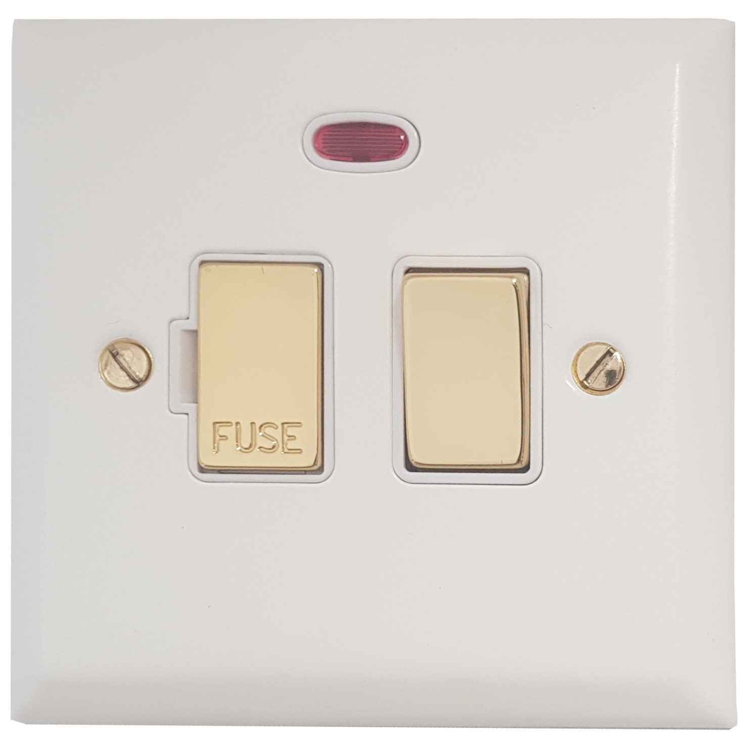 Spectrum White Switched Fused Spur with Neon (White insert/Polished Brass Switch)