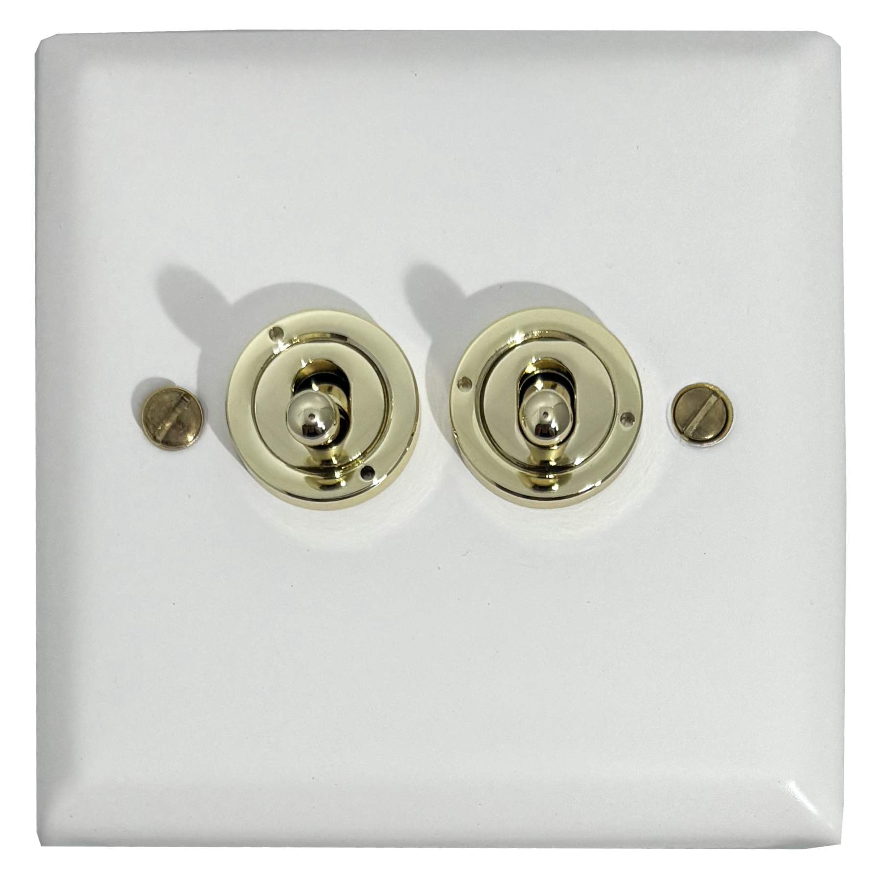 Spectrum White Toggle Switch (2 Gang/Polished Brass Switches)
