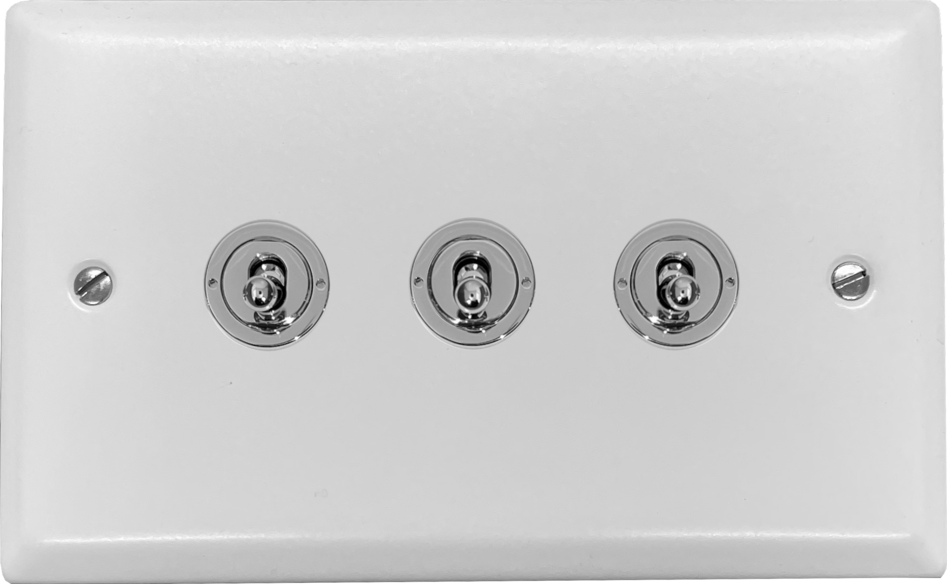 Spectrum White Toggle Switch (3 Gang/Polished Chrome Switches)