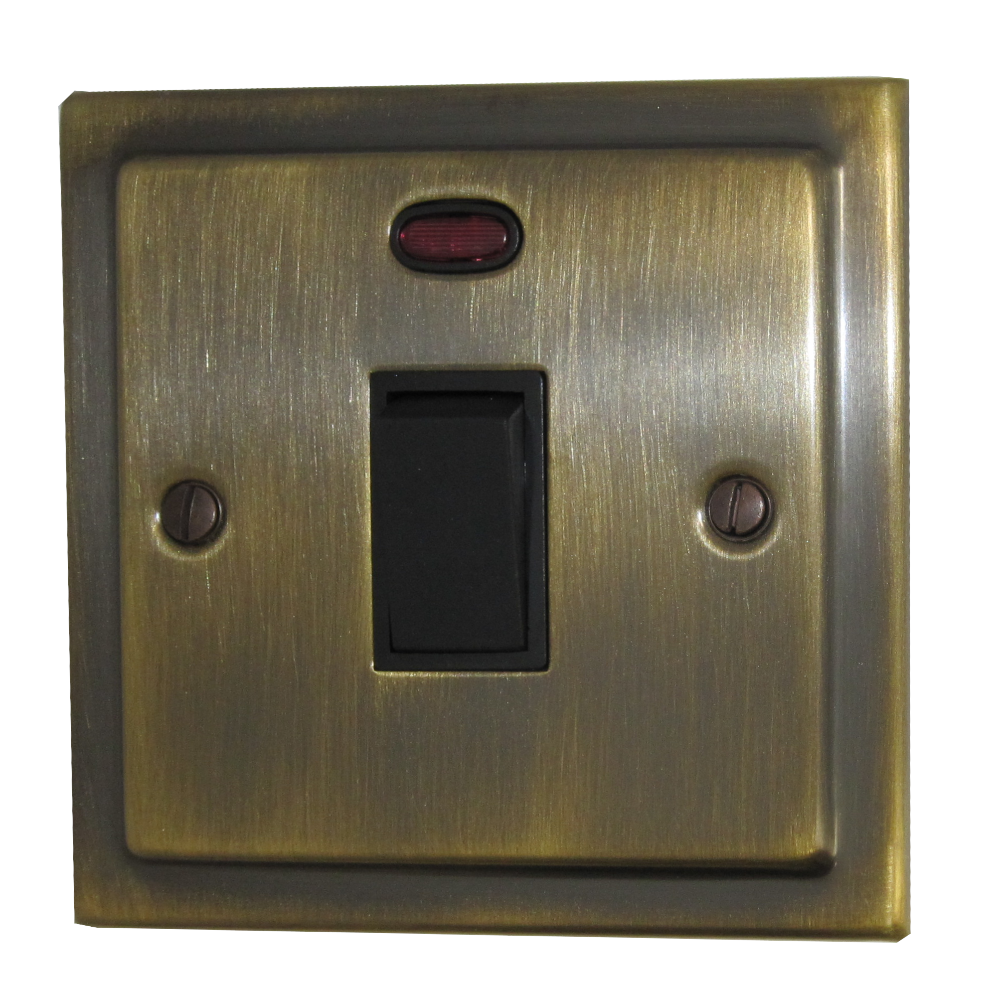 Trimline Antique Brass 20 Amp DP Switch with Neon (Black Switch) - G+H TAB26B