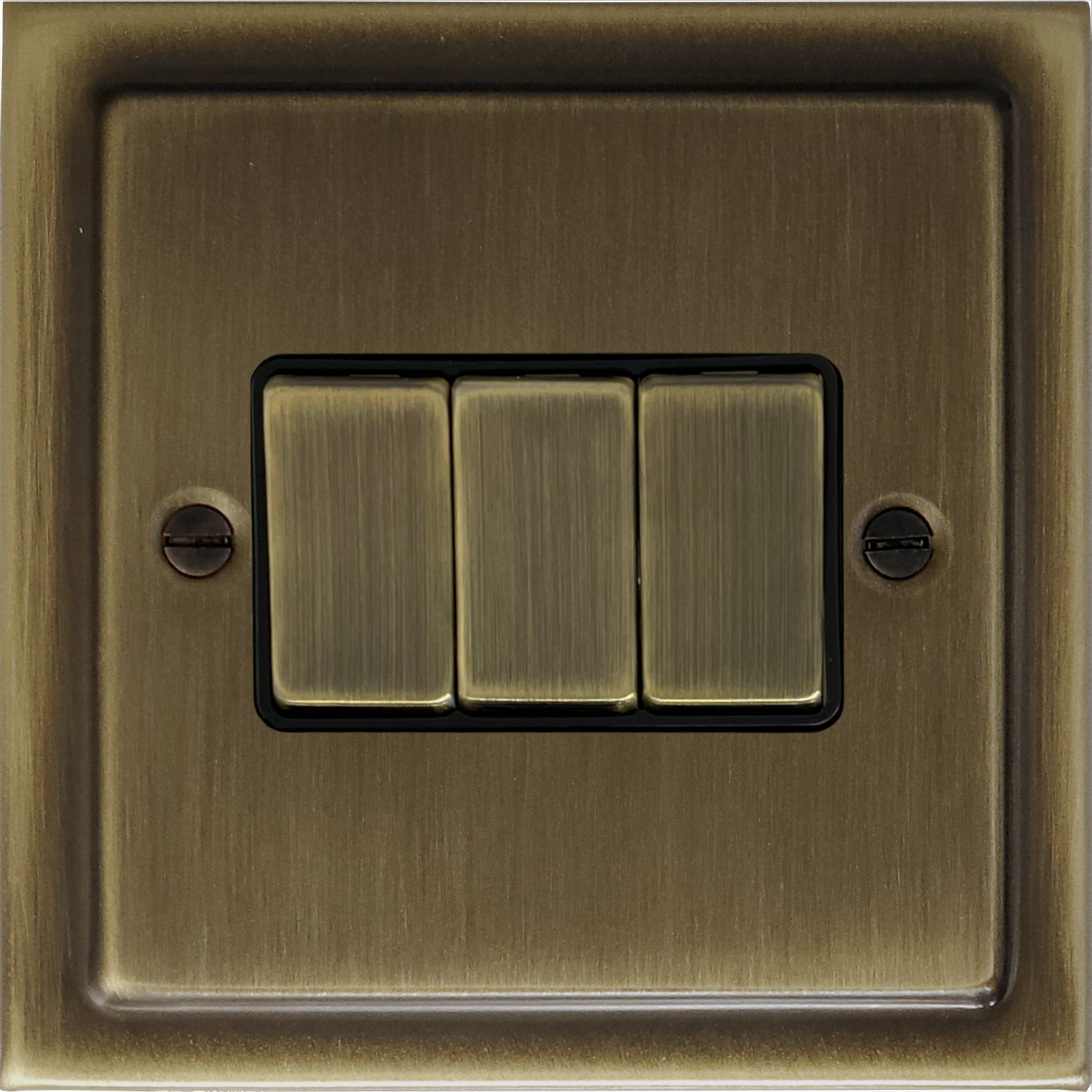 Trimline Antique Brass Switch (3 Gang) - G+H TAB303