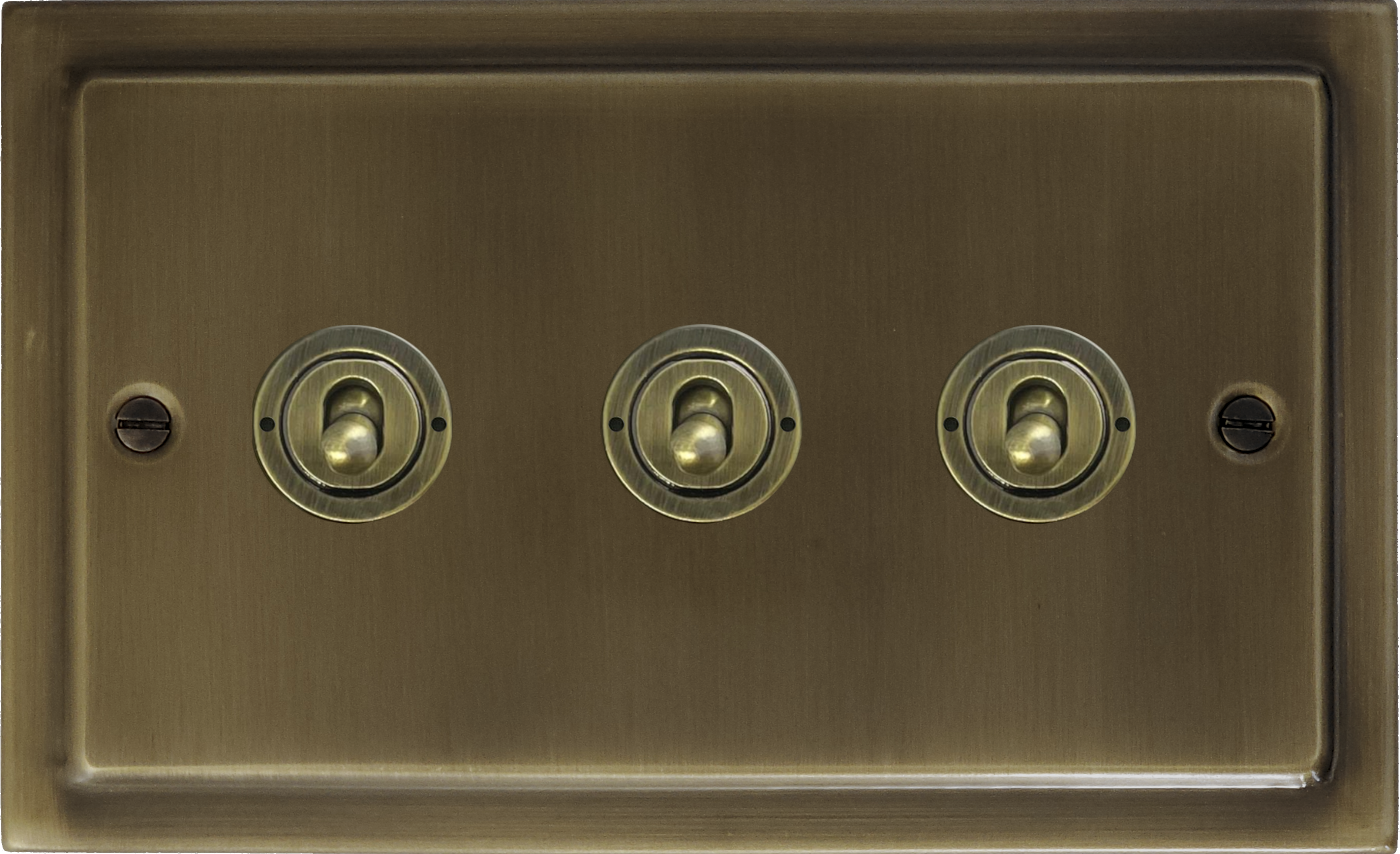 Trimline Antique Brass Toggle Switch (3 Gang)