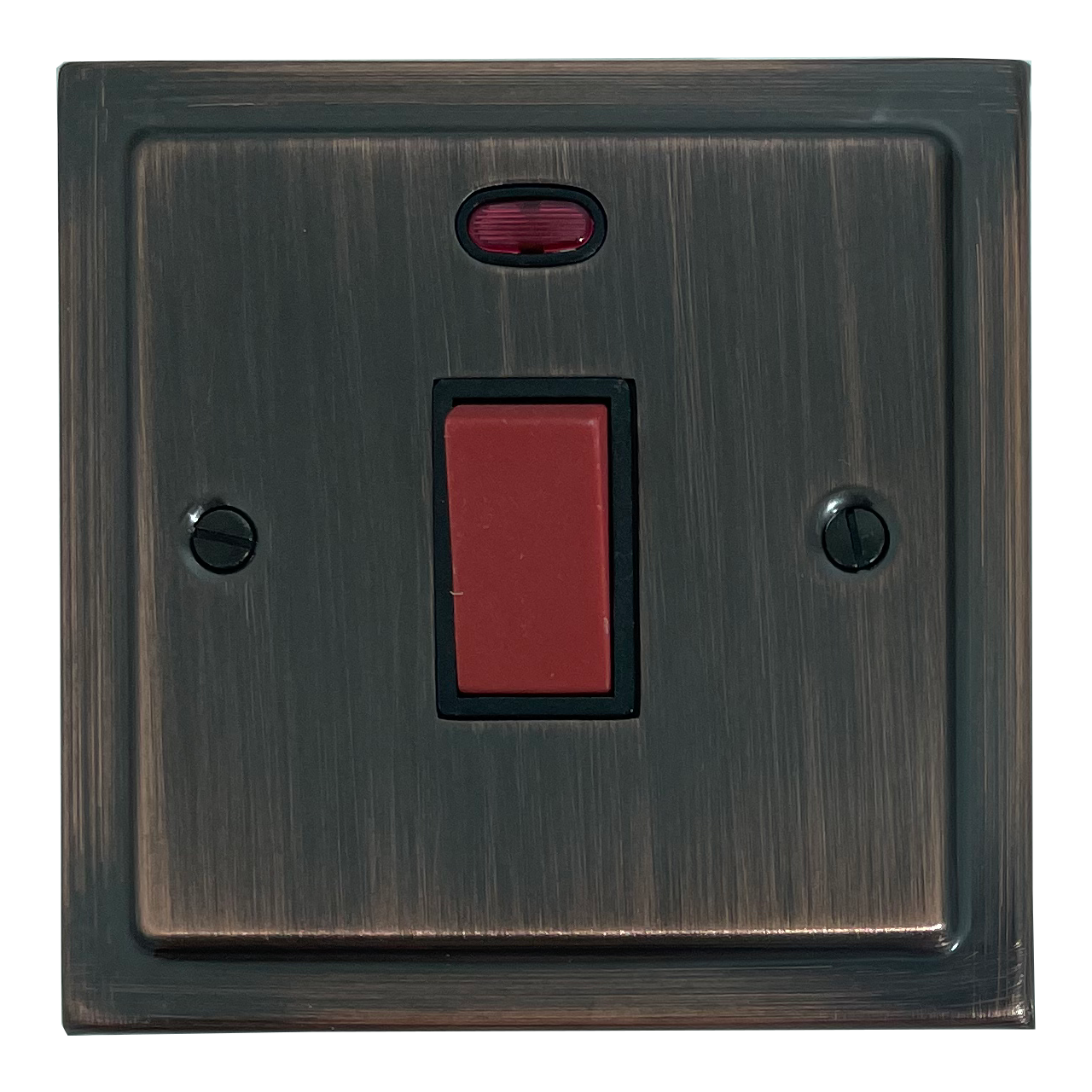 Trimline Antique Copper 45A DP Switch with Neon (Black Insert/Red Switch) - G+H TAC46B