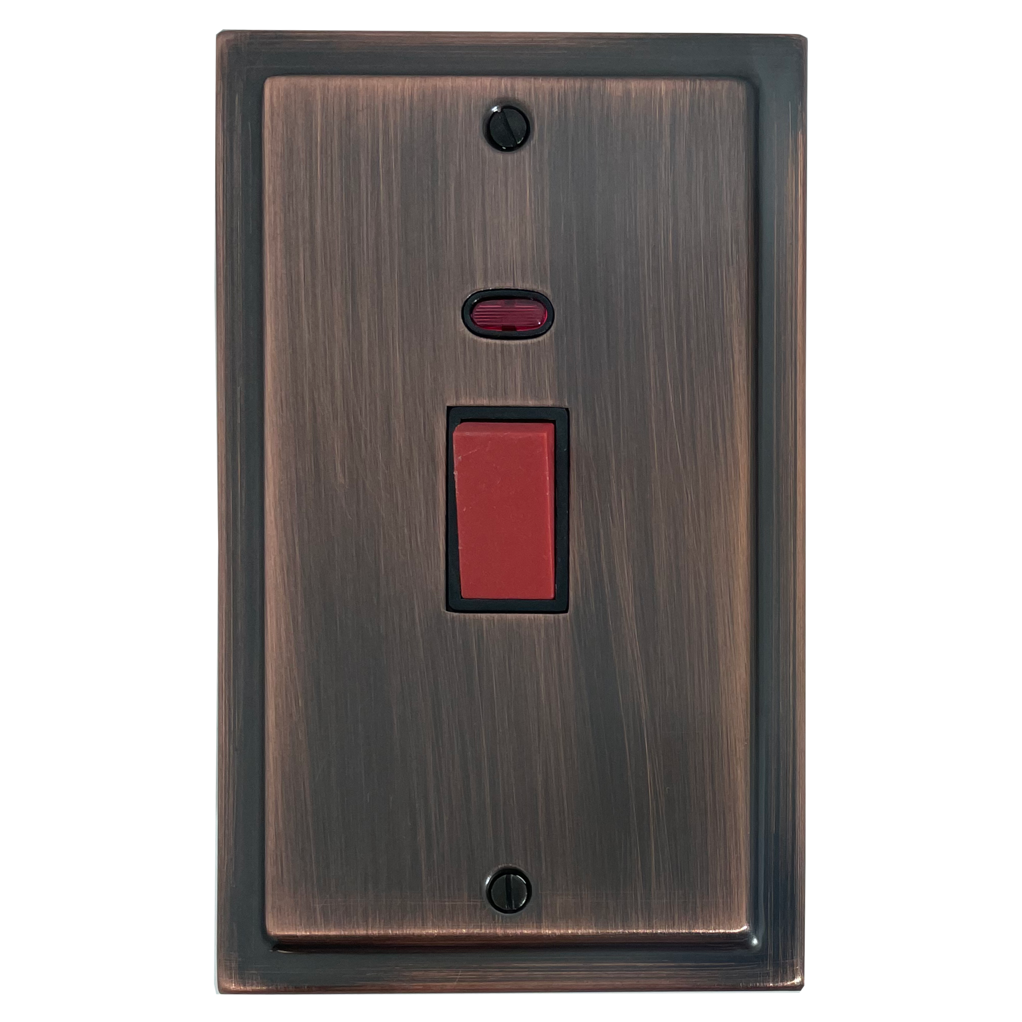 Trimline Antique Copper 45A DP Switch with Neon (Black Insert/Red Switch/Vertical Plate)