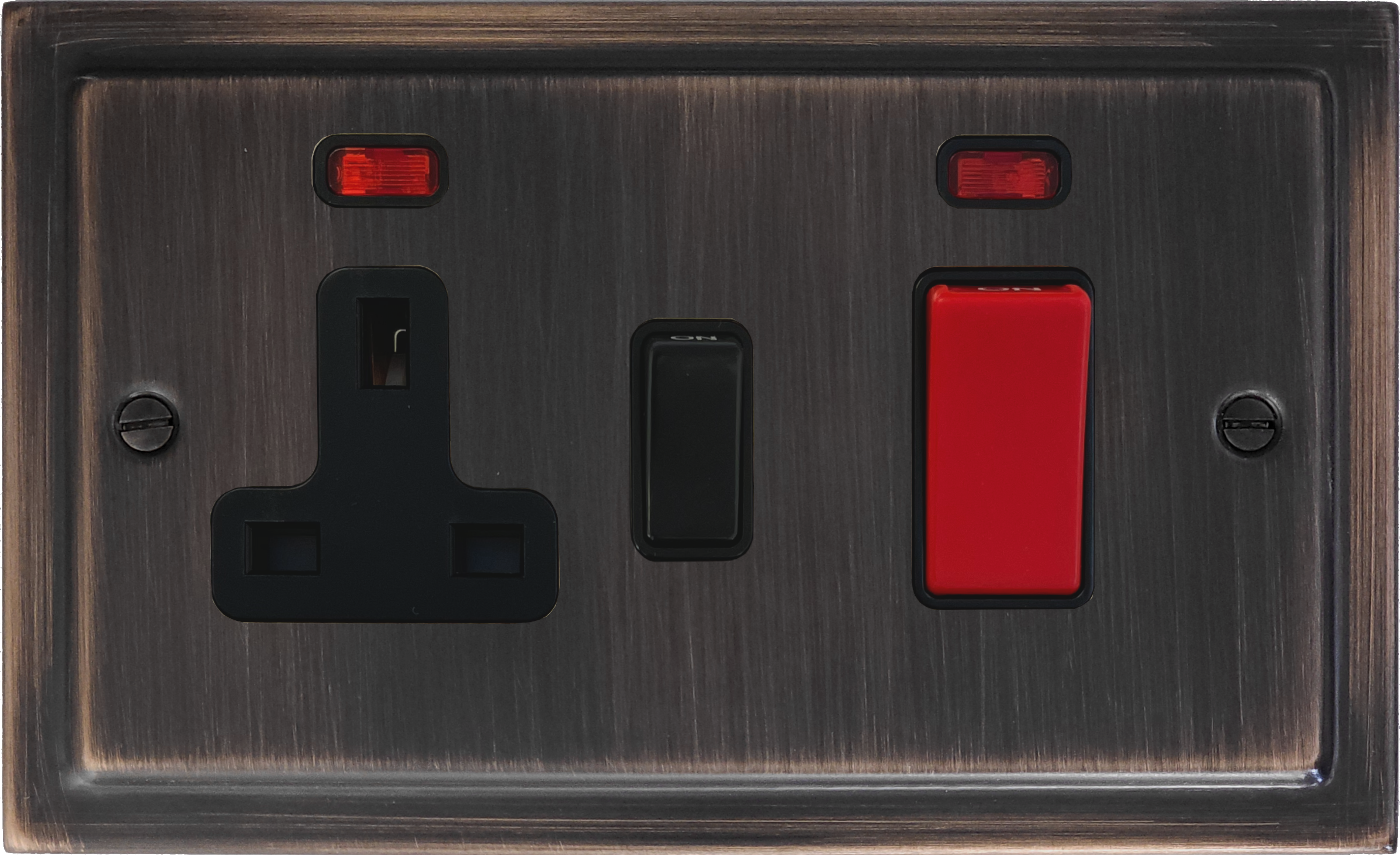 Trimline Antique Copper Cooker Switch with Socket (Black Switch)