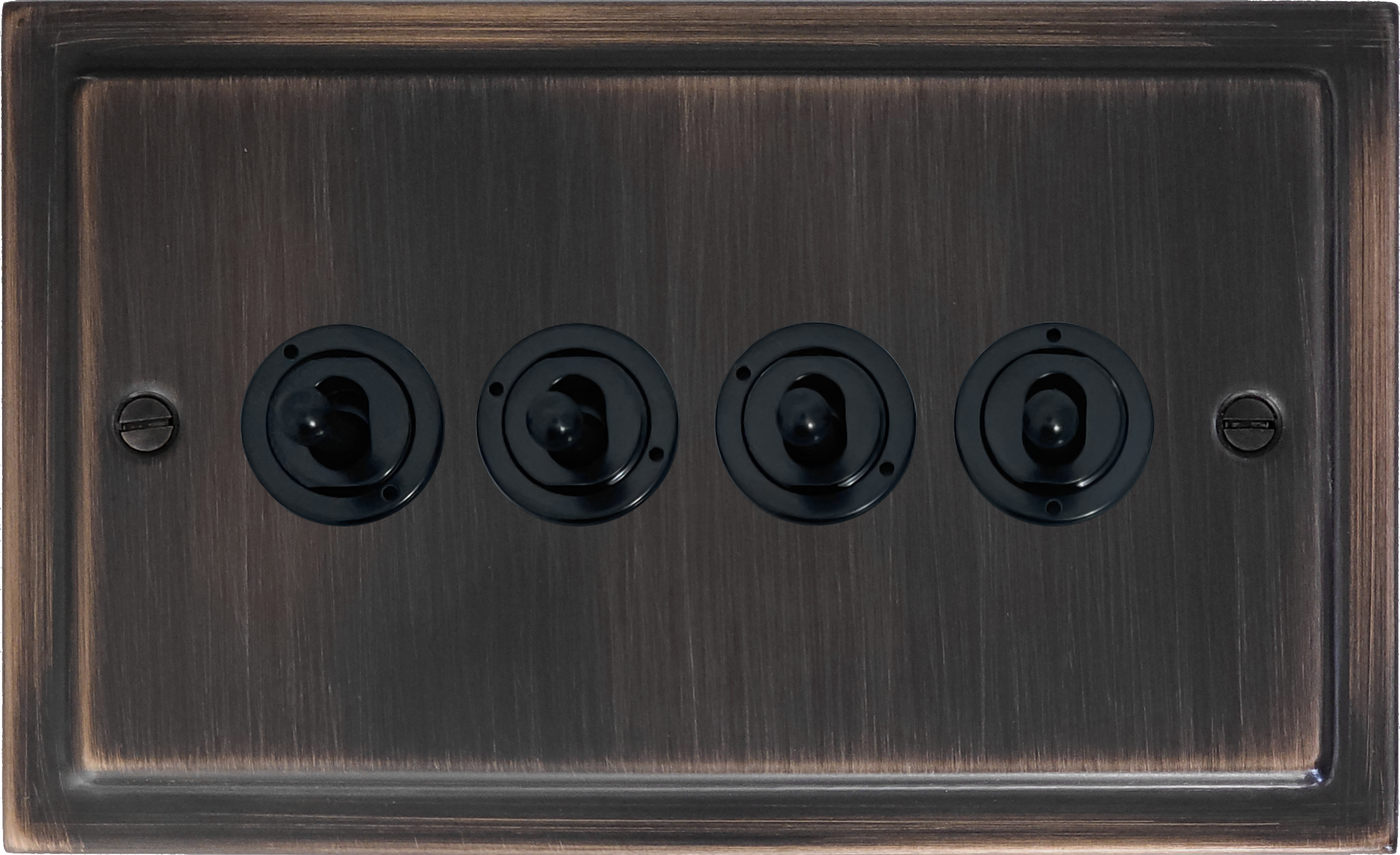 Trimline Antique Copper Toggle Switch (4 Gang/Matt Black Toggles) - G+H TAC384-FBK
