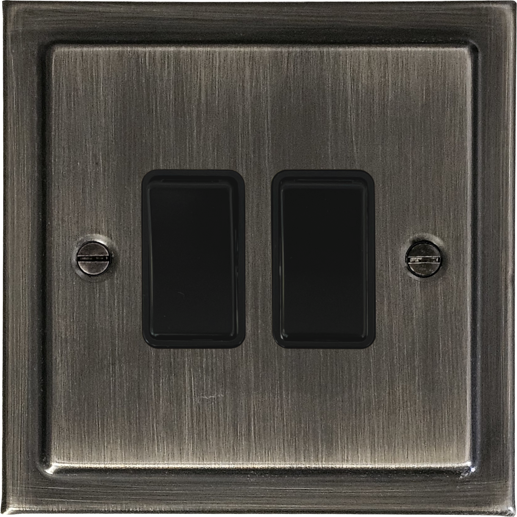 Trimline Antique Nickel Light Switch (2 Gang) - G+H TNA2B