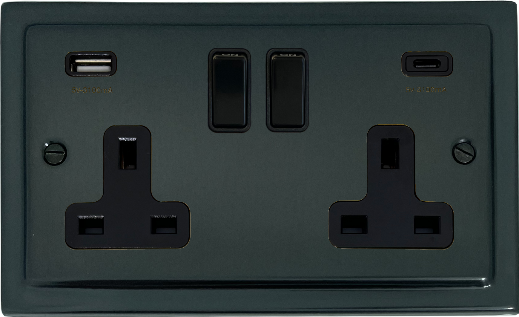 Trimline Black Bronze Double Socket (2 Gang/USB-A and USB-C) - G+H TBB911B