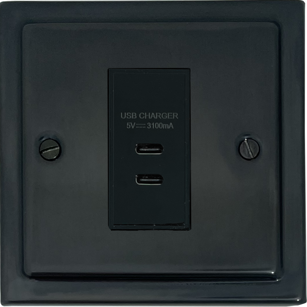 Trimline Black Bronze USB Charger (2x USB-C) (1 Gang) - G+H TBB42B