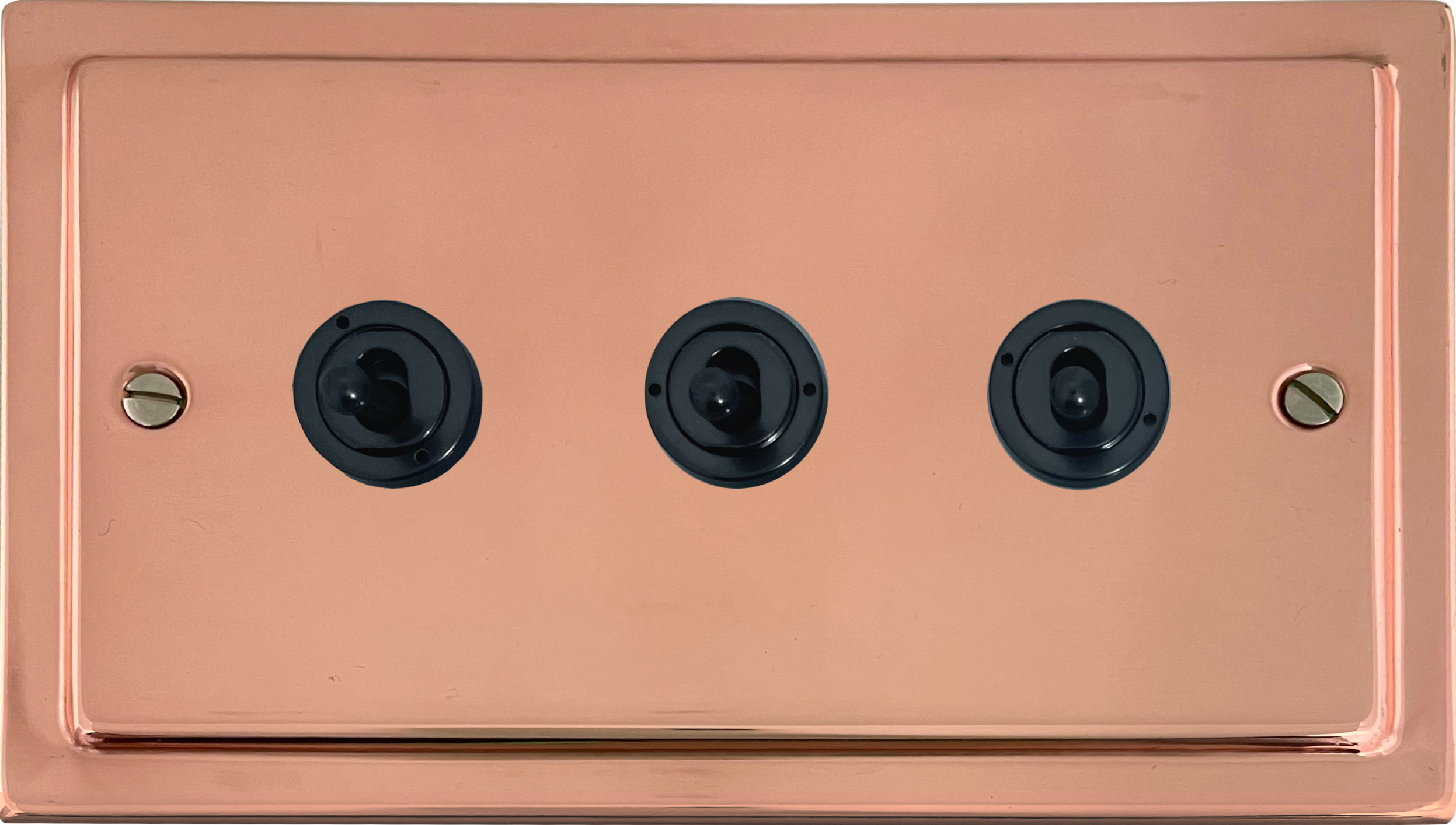 Trimline Copper Toggle Switch (3 Gang/Flat Black Toggle) - G+H TBC383-FBK