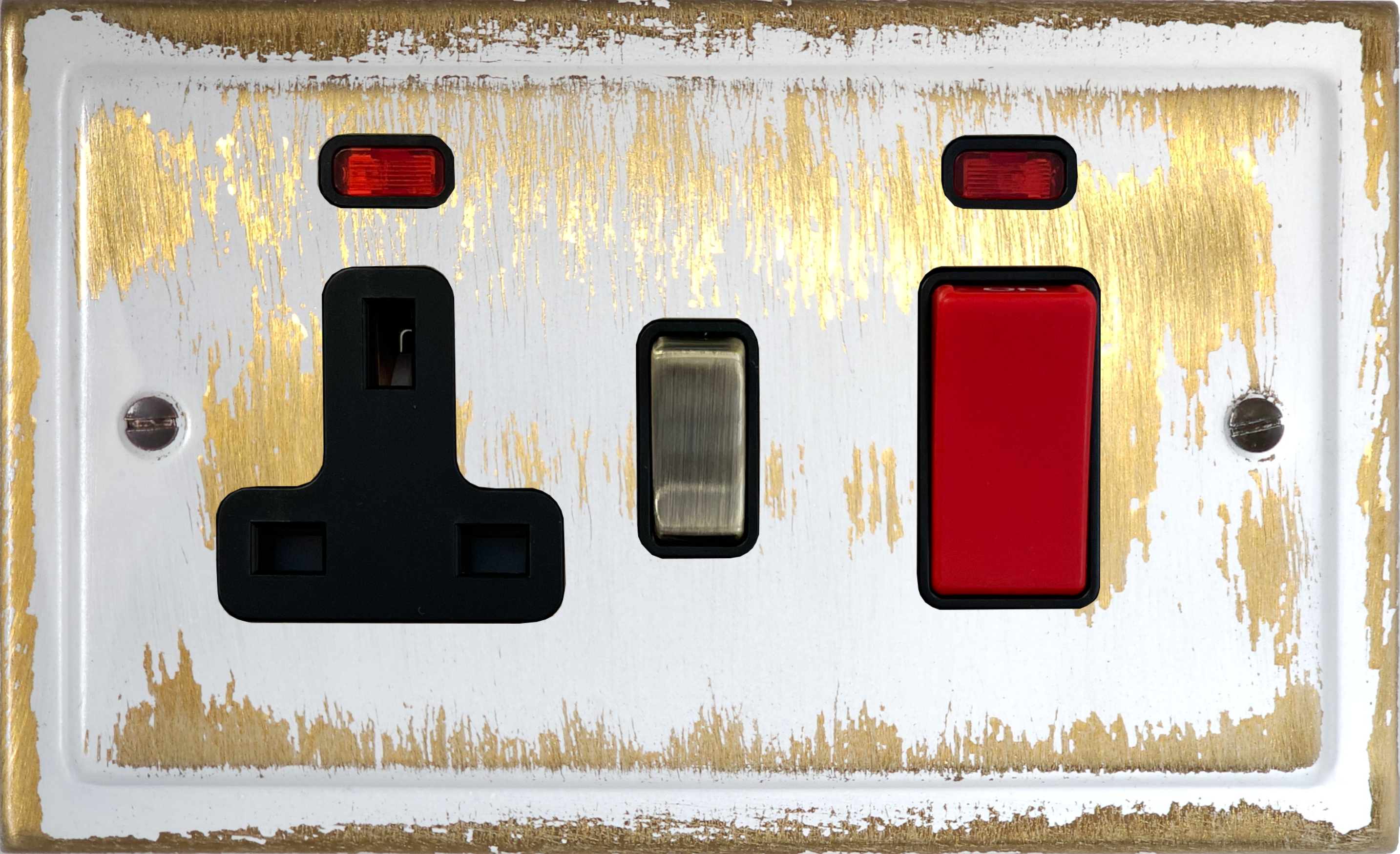 Trimline Dover Bronze Cooker Switch with Socket (Antique Brass Switch/Black Surround)