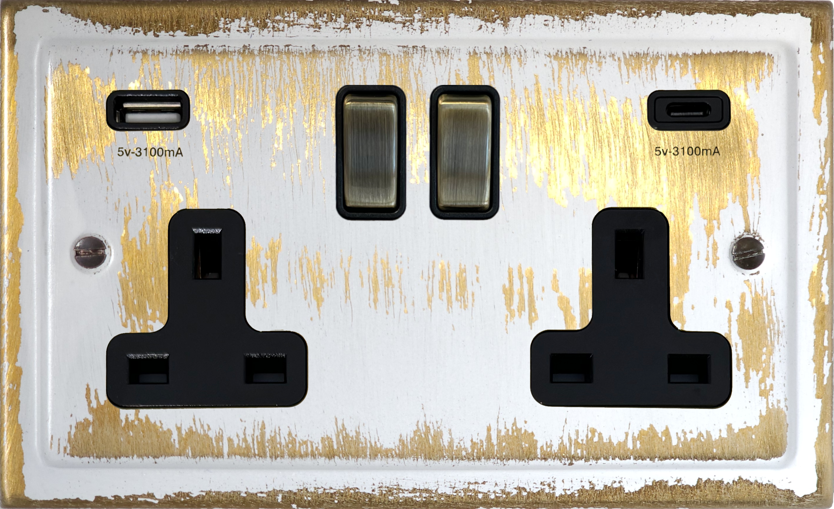 Trimline Dover Bronze Double Socket with USB (USB-A and USB-C/Antique Brass Switches) - G+H TDB3911
