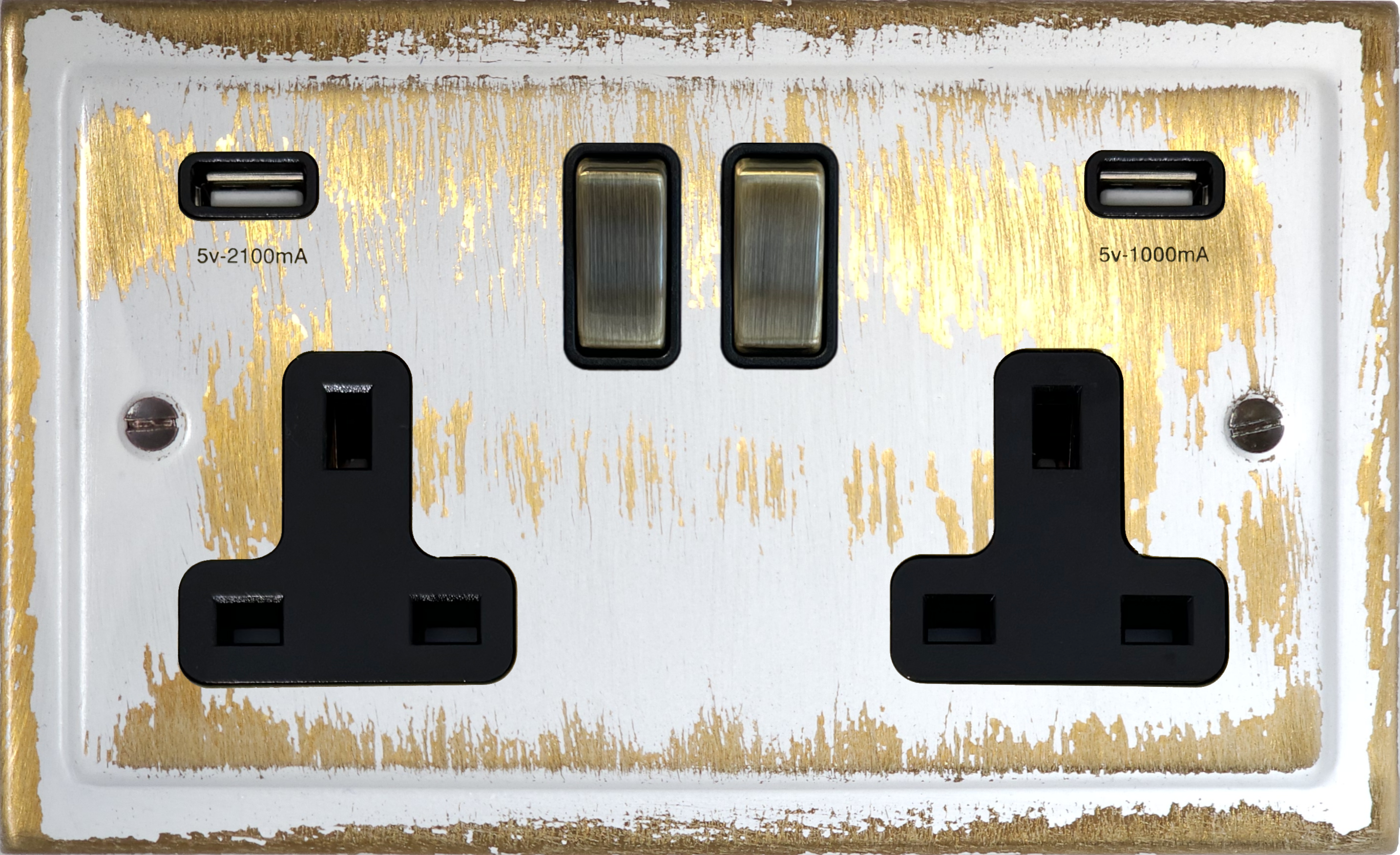Trimline Dover Bronze Socket with USB (Double Socket/Antique Brass Switches/Black Insert) - G+H TDB3910