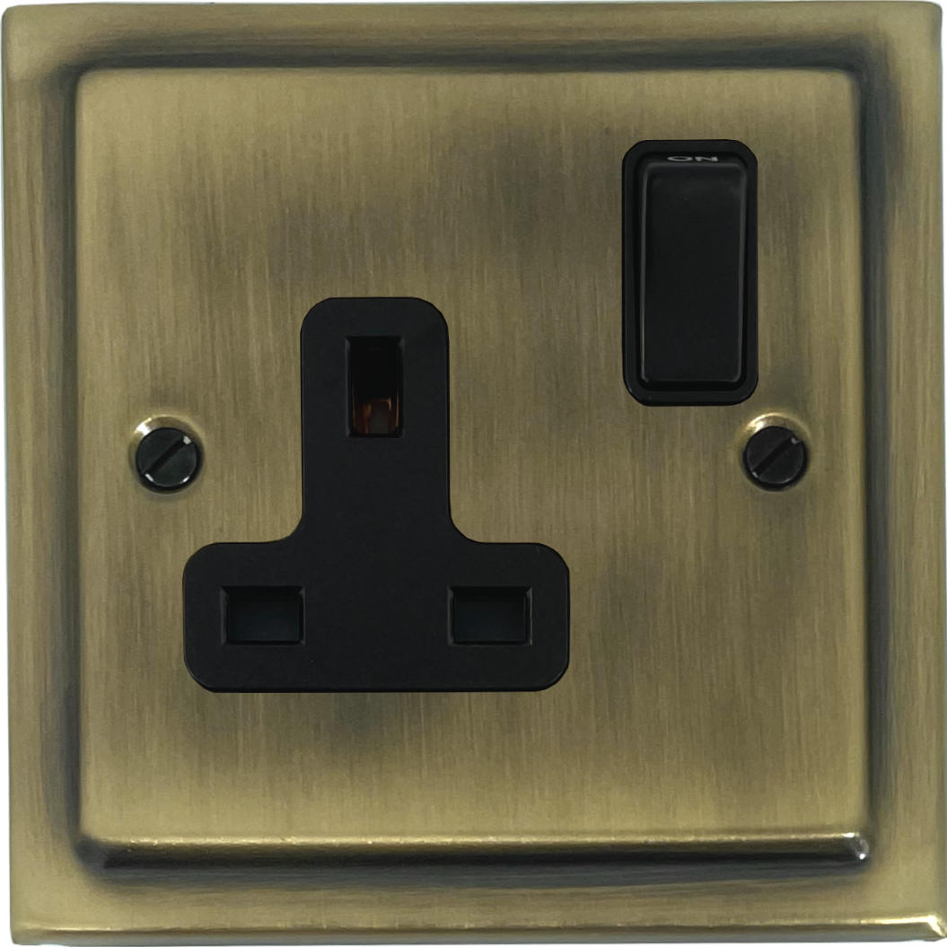 Trimline Light Antique Brass Socket (1 Gang/Black Switch) - G+H TLAB9B
