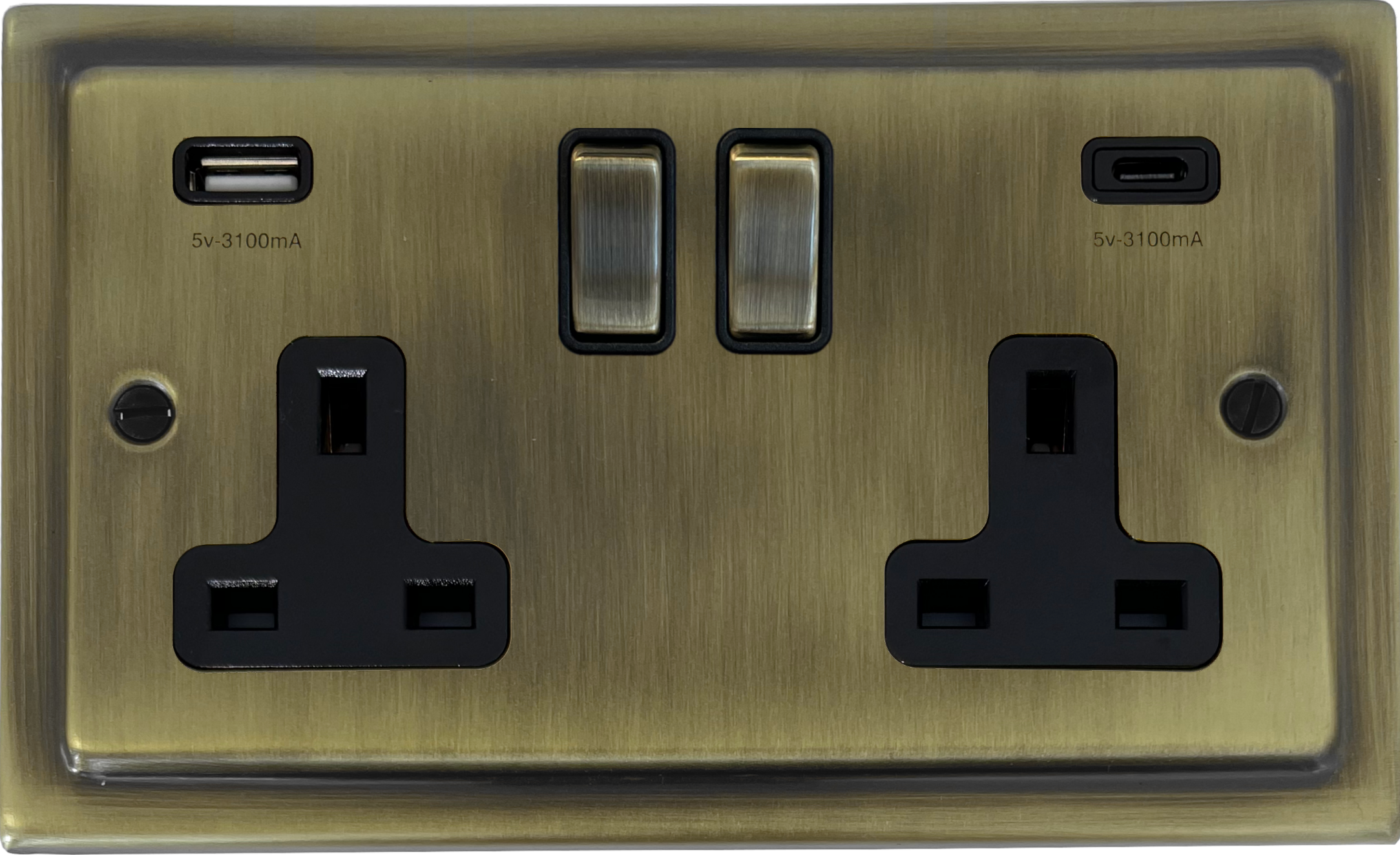 Trimline Light Antique Brass Socket with USB (2 Gang/USB-A and USB-C) - G+H TLAB3911