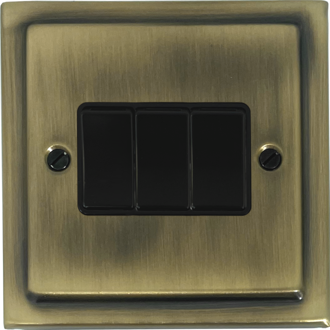 Trimline Light Antique Brass Switch (3 Gang/Black Switches) - G+H TLAB3B