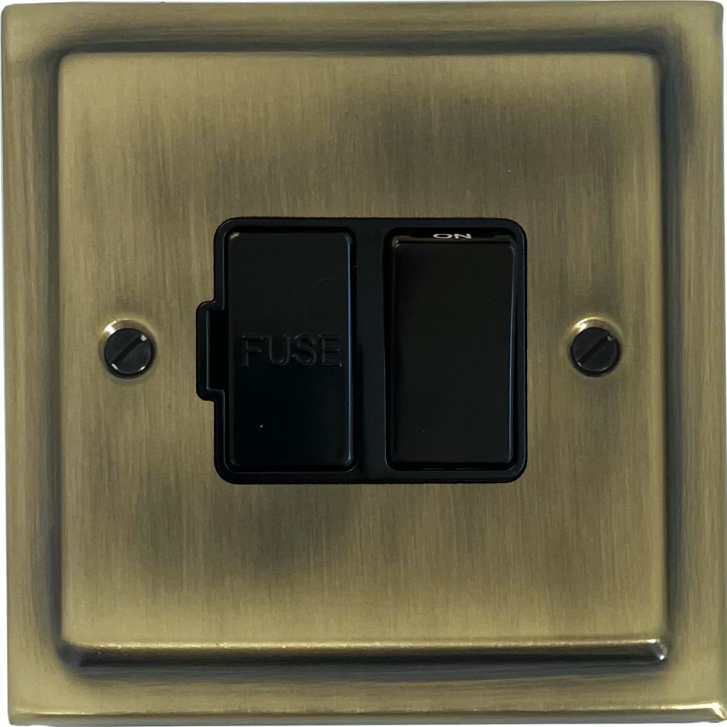 Trimline Light Antique Brass Switched Fused Spur (Black Switch) - G+H TLAB57B