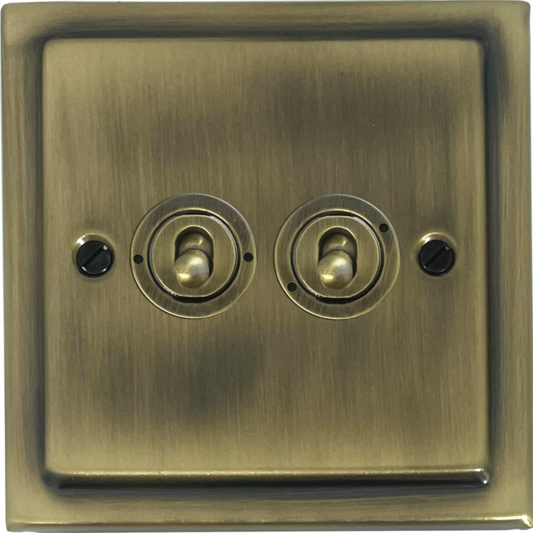 Trimline Light Antique Brass Toggle Switch (2 Gang) - G+H TLAB382