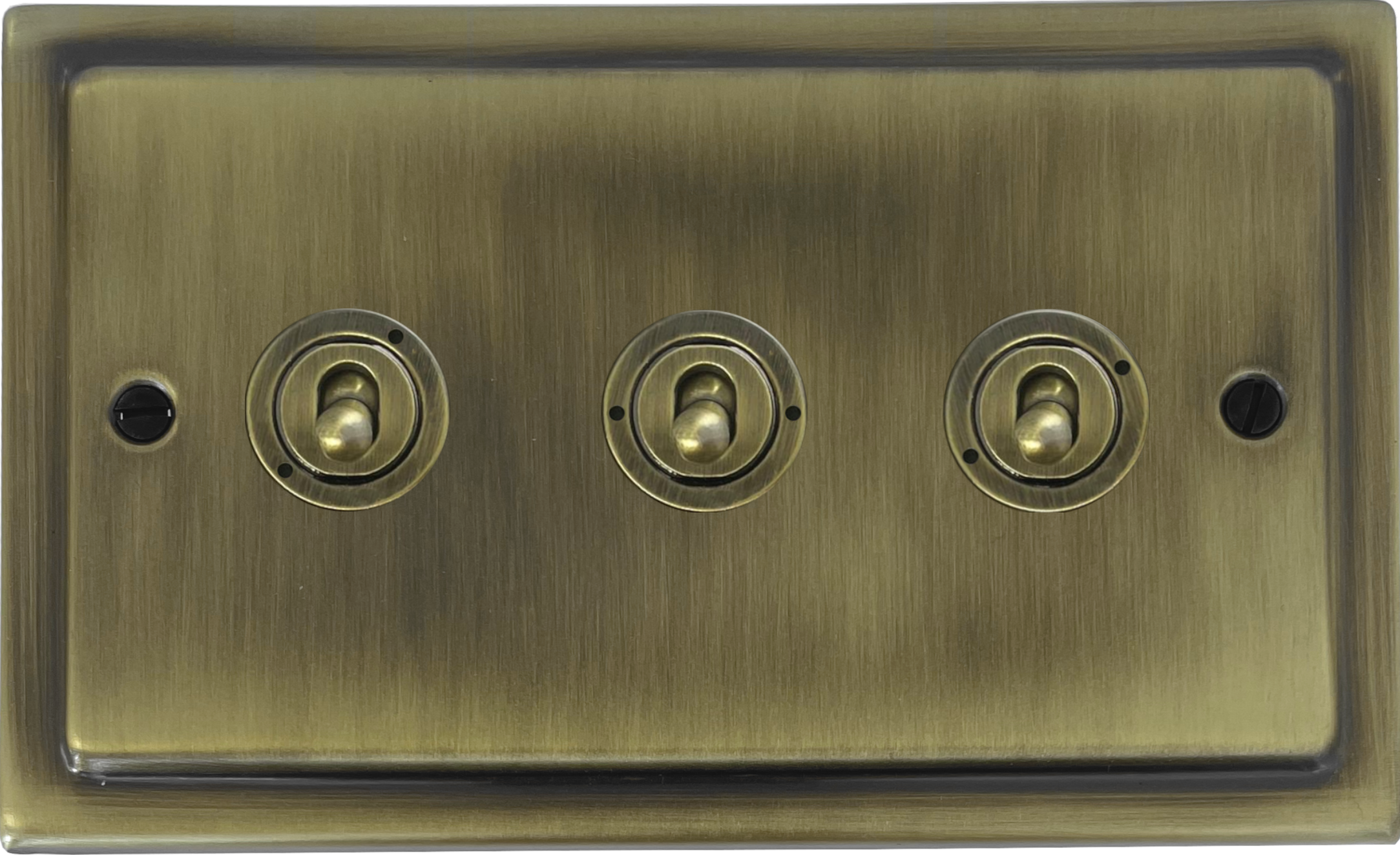 Trimline Light Antique Brass Toggle Switch (3 Gang) - G+H TLAB383