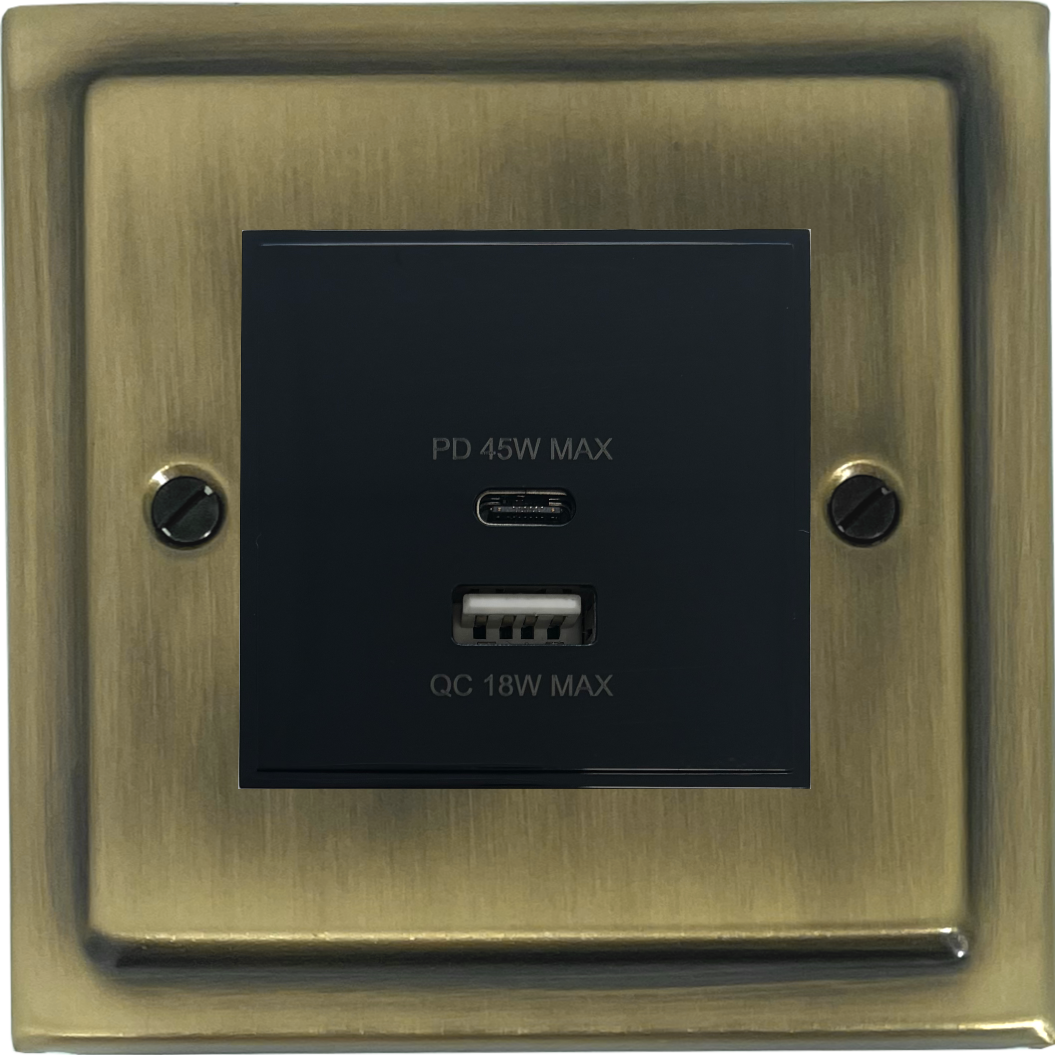 Trimline Light Antique Brass USB Charger (Dual USB A + C Quick Charge) (1 Gang) - G+H TLAB43B