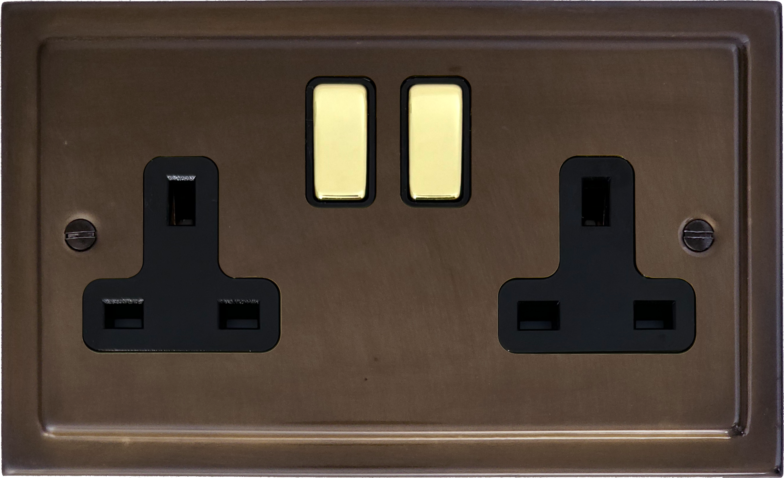 Trimline Medium Bronze Double Socket (Black Insert/Polished Brass Switches) - G+H TMBZ310-PB