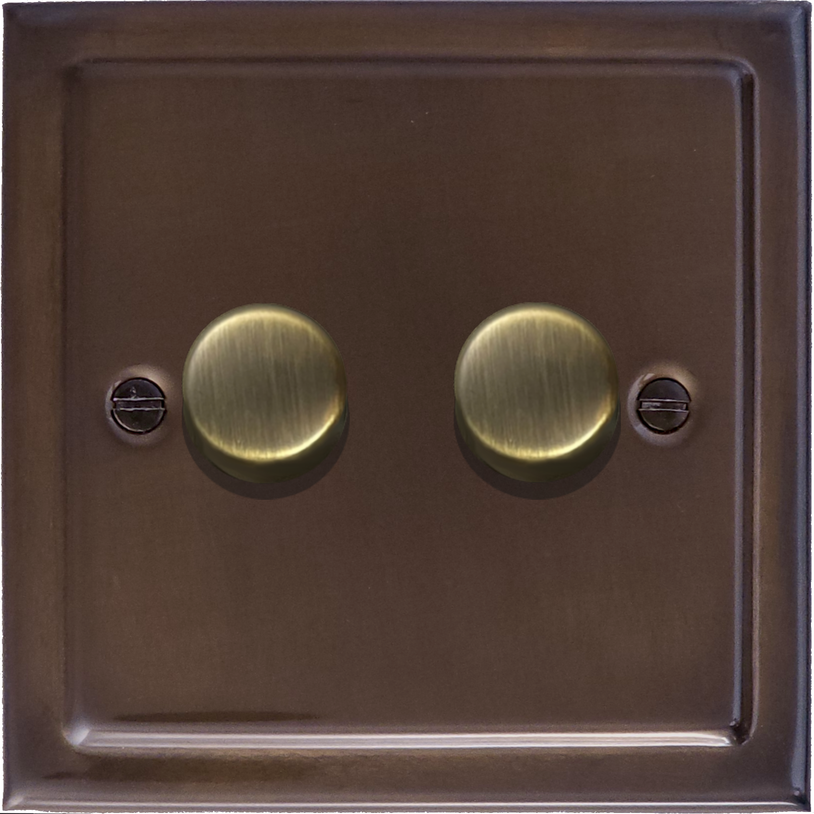 Trimline Medium Bronze LED Dimmer (2 Gang/Antique Brass Caps) - G+H TMBZ522-AB