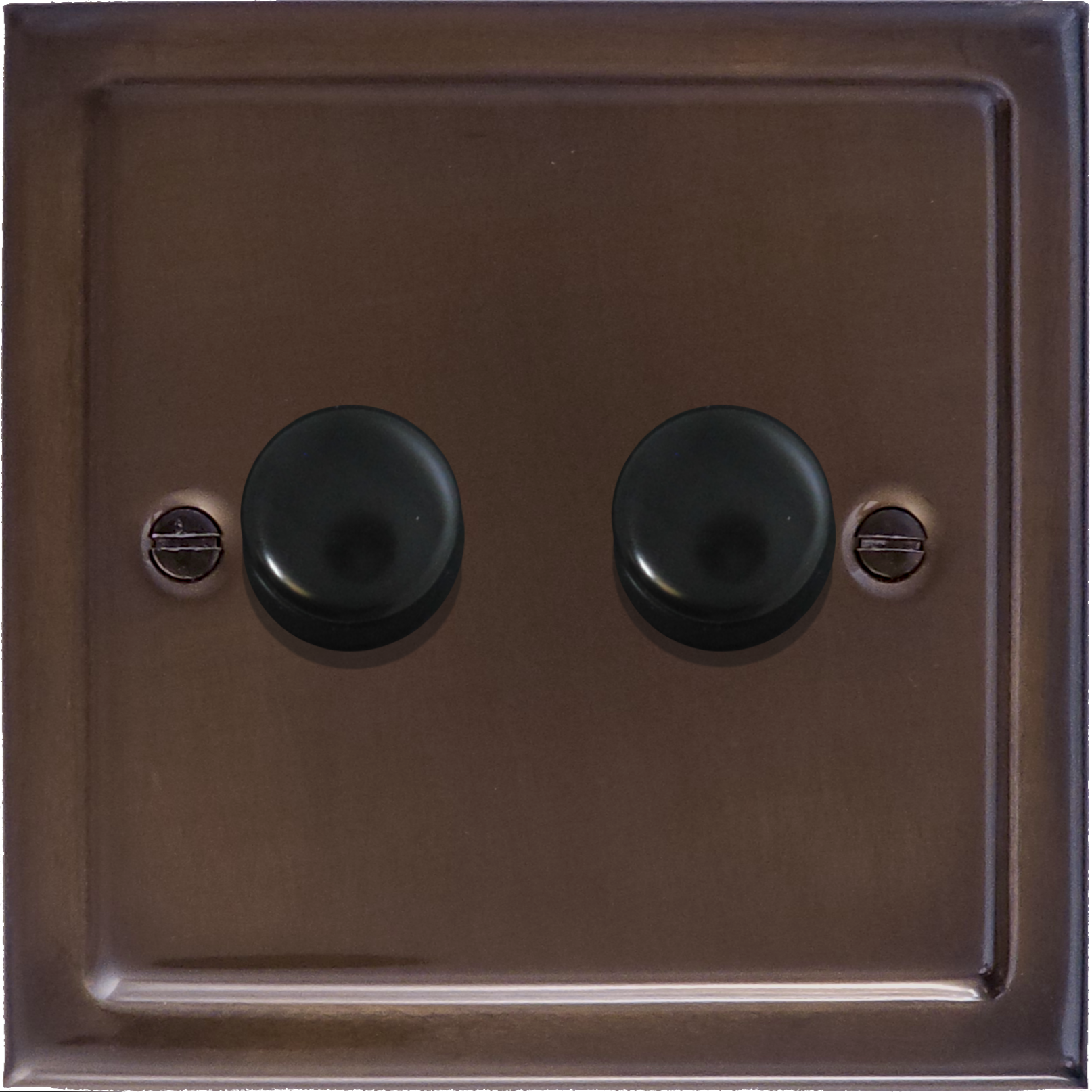 Trimline Medium Bronze LED Dimmer (2 Gang/Black Cap) - G+H TMBZ522-B