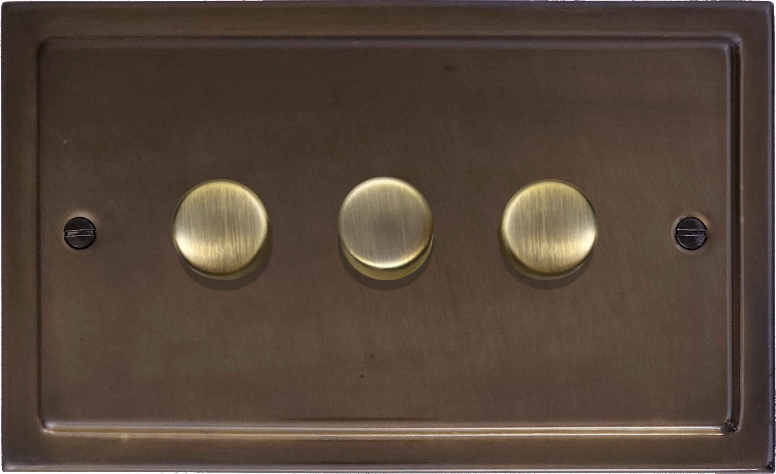 Trimline Medium Bronze LED Dimmer (3 Gang/Antique Brass Caps) - G+H TMBZ523-AB