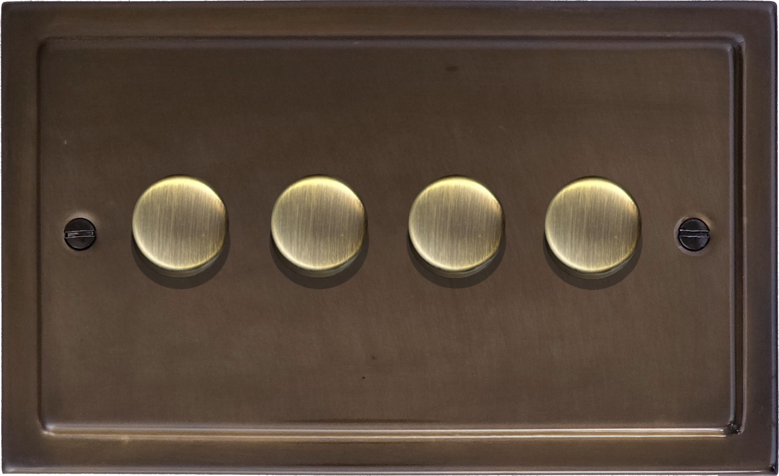Trimline Medium Bronze LED Dimmer (4 Gang/Antique Brass Caps) - G+H TMBZ524-AB