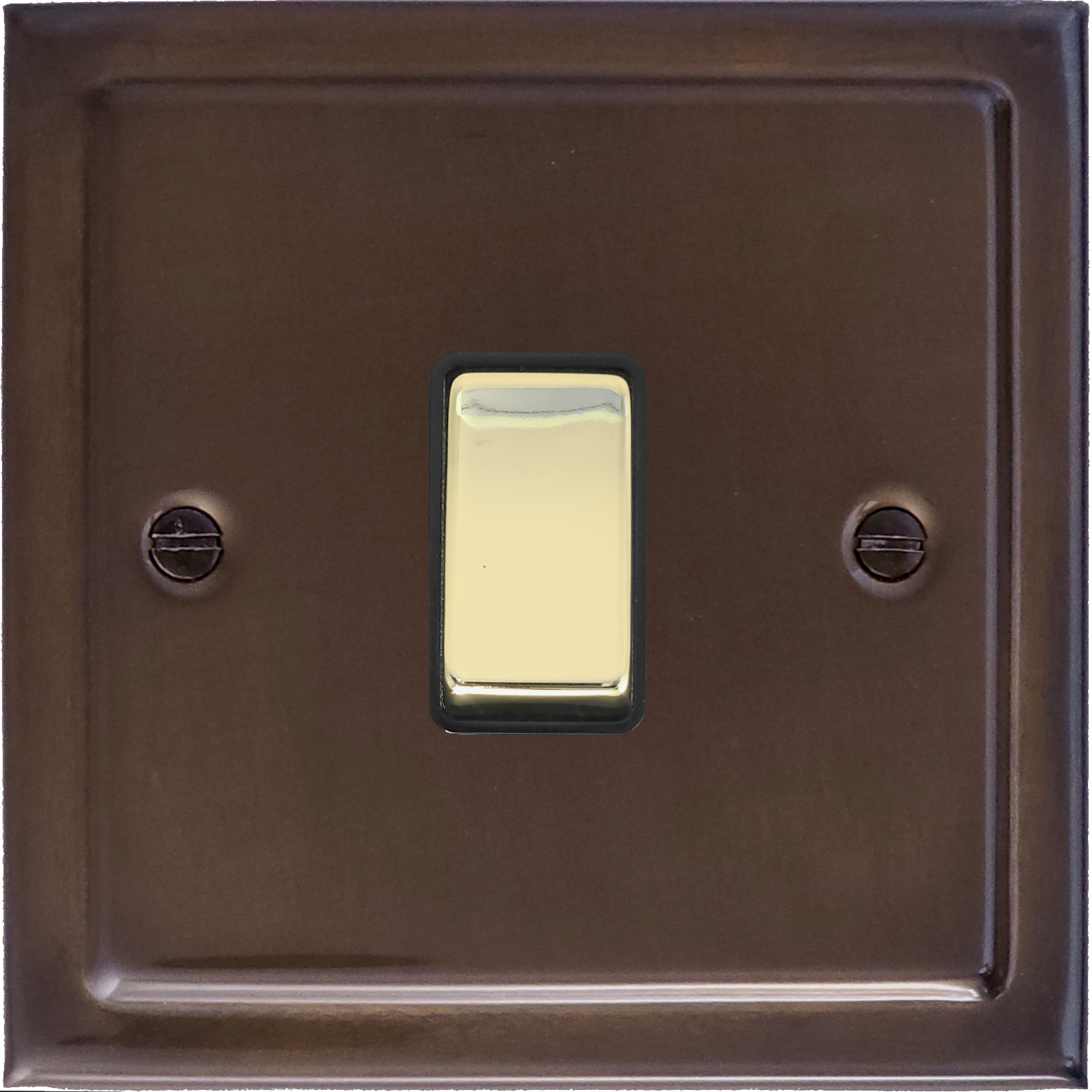 Trimline Medium Bronze Light Switch (1 Gang/Black Insert/Polished Brass Switch) - G+H _TMBZ1