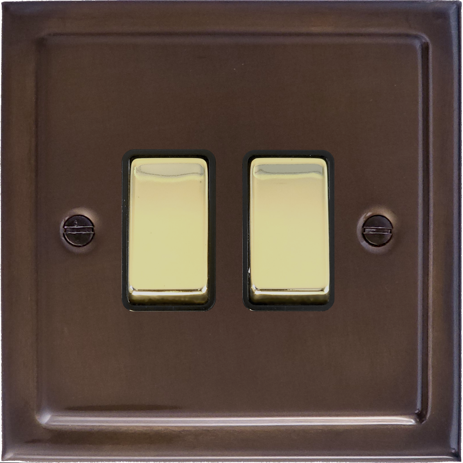 Trimline Medium Bronze Light Switch (2 Gang/Black Insert/Polished Brass Switches)